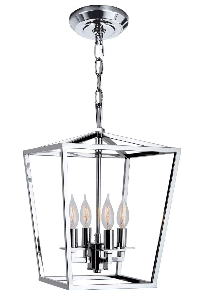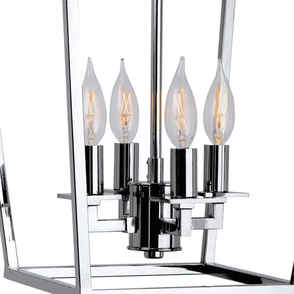 The old world charm of the Cage medium pendant shines through the fixtures finely crafted framework with four candelabra bulbs.