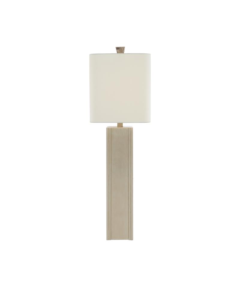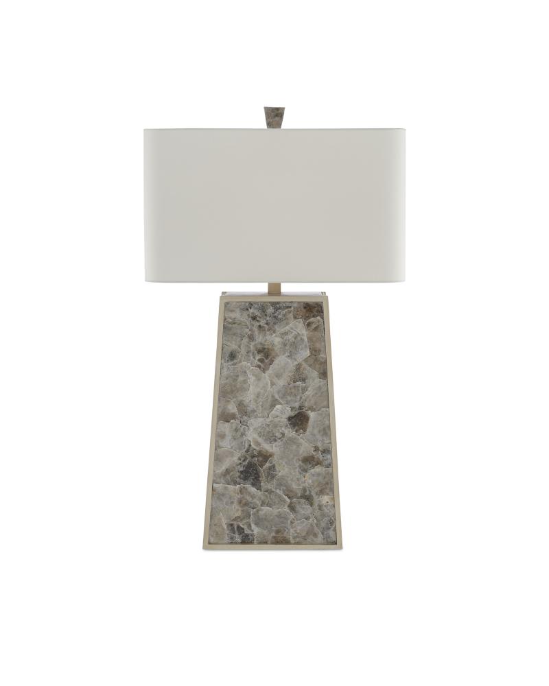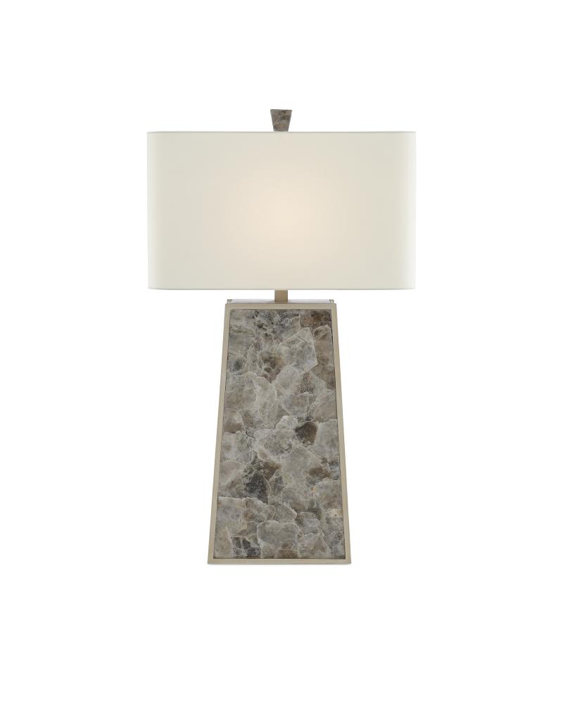Our Calloway Table Lamp is a remarkable lamp covered in mica in a light mica finish. The natural material is surrounded by a wood frame in a silver leaf finish. A mica finial fastens the off-white shantung shade to the gray lamp to serve as a crowning touch.