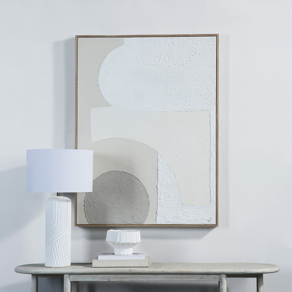 Experience the beauty of contemporary art with the Canberra 48.2" Wide Canvas Art with Wood Frame - the perfect addition to any modern home. With a sleek oak wood frame, the canvas art is expertly crafted to deliver a subtle yet stunning look. The wide design promises an impressive view of the intricate details, while the sturdy construction gives it an inherent durability. The wooden frame perfectly complements the canvas, creating a seamless finished look that's both polished and sophisticated. With vertical and horizontal hanging options, this canvas is versatile and will enhance any space in your home or office.