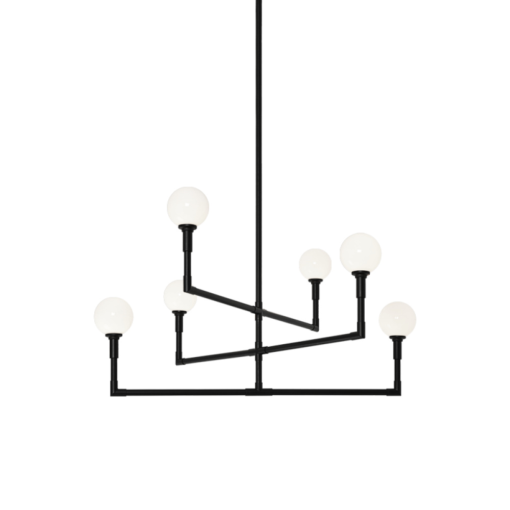 The captivating Candelstix chandelier comes in 6 light and 8 light version. Clean lines and open airy look will definitely make an impact. Available in Aged Gold Brass and Black with either Clear or Opal Glass.