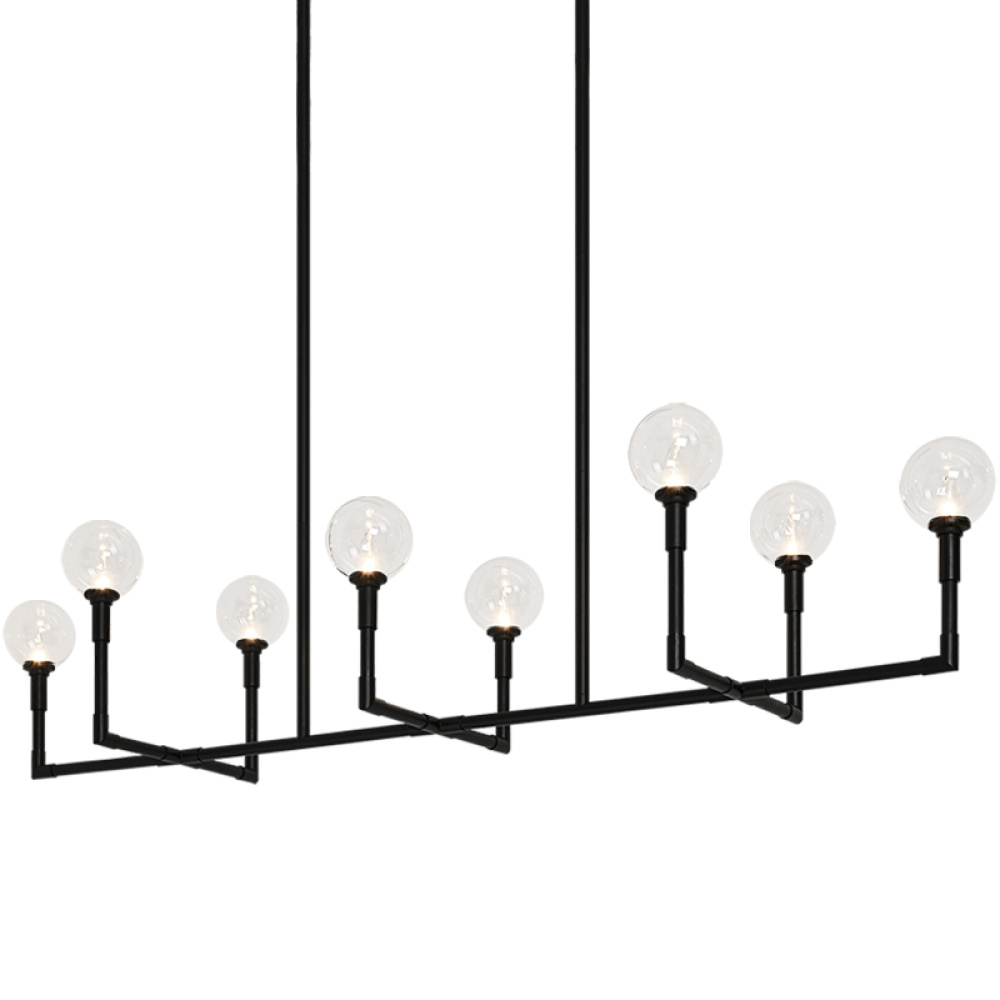 The captivating Candelstix chandelier comes in 6 light and 8 light version. Clean lines and open airy look will definitely make an impact. Available in Aged Gold Brass and Black with either Clear or Opal Glass.