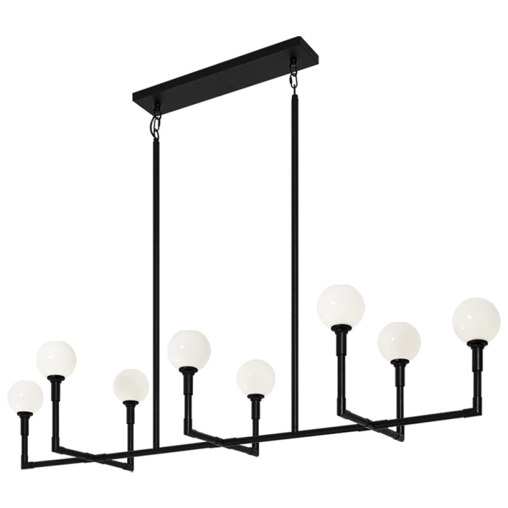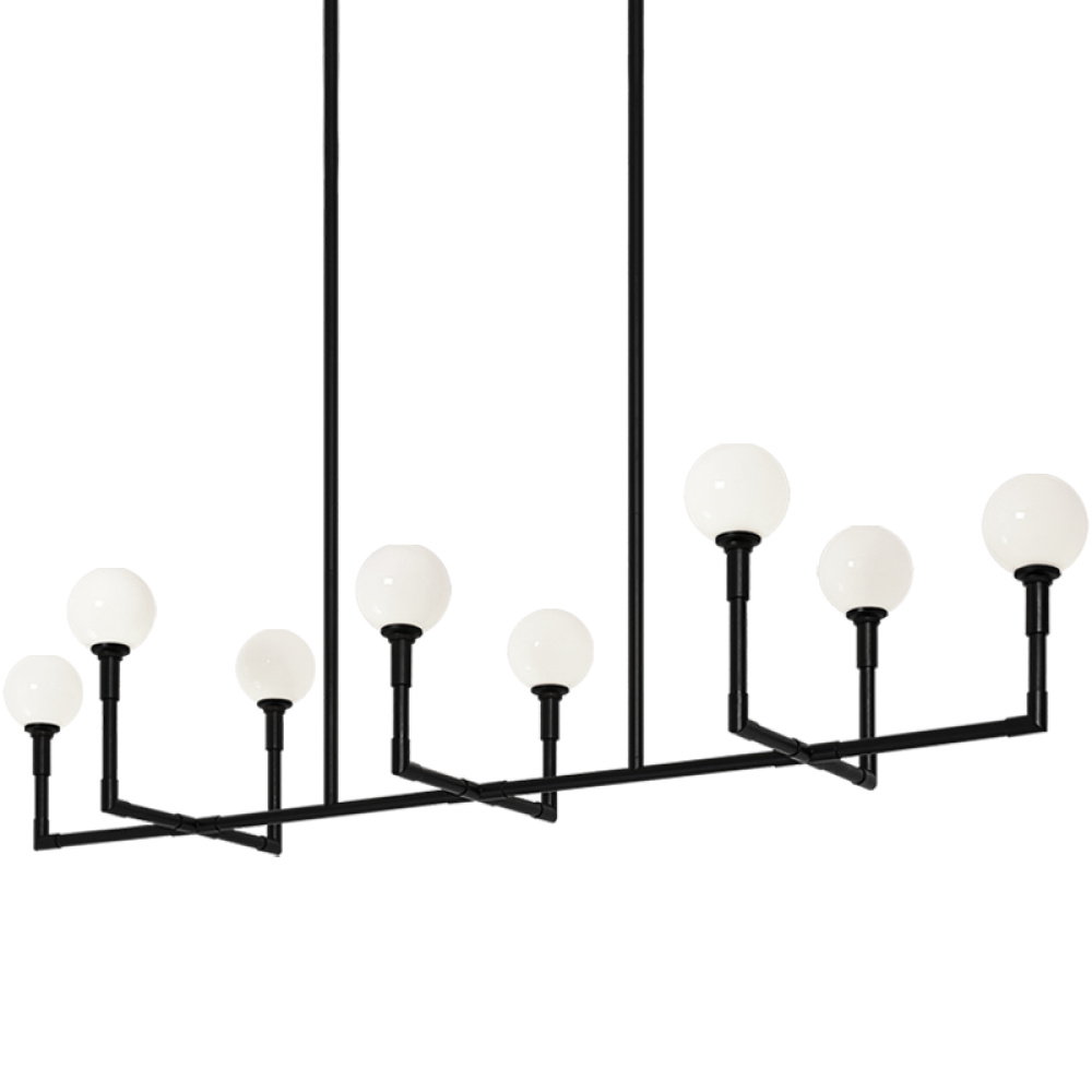 The captivating Candelstix chandelier comes in 6 light and 8 light version. Clean lines and open airy look will definitely make an impact. Available in Aged Gold Brass and Black with either Clear or Opal Glass.