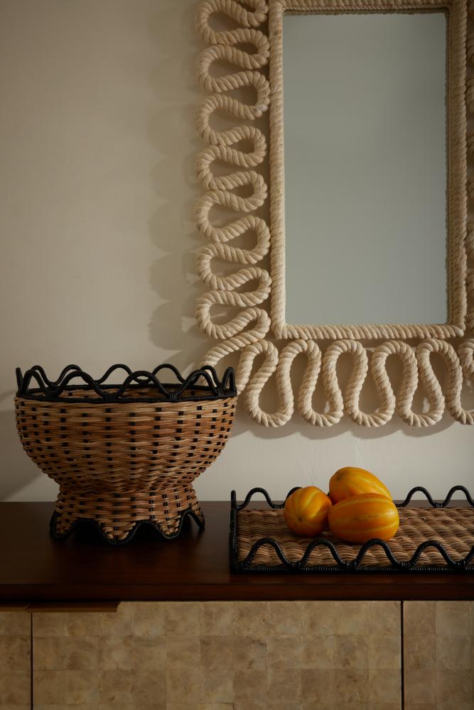 As a lyrical counterpoint, the ivory cotton rope lines of the Caracol are like a sound wave; a fluid line wrapping around a rectangle; enough graphic impact to become artwork in the room or a playful frame to one’s reflection.