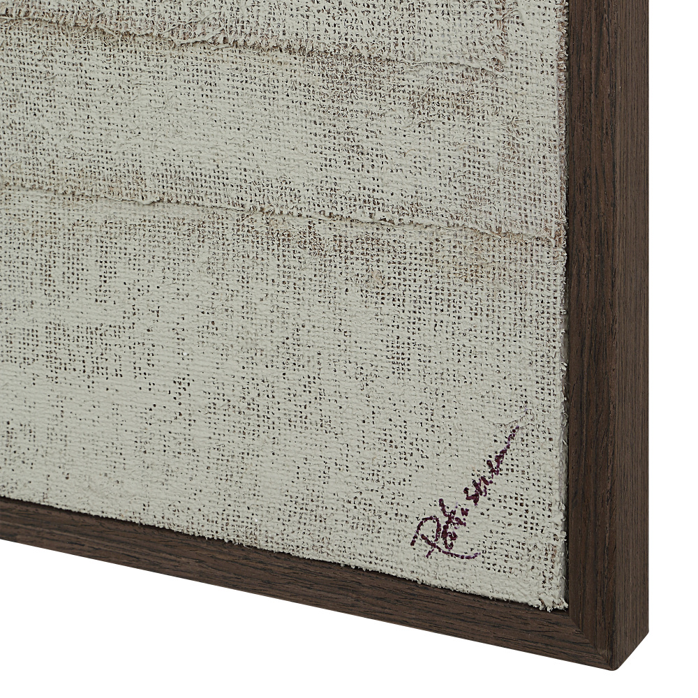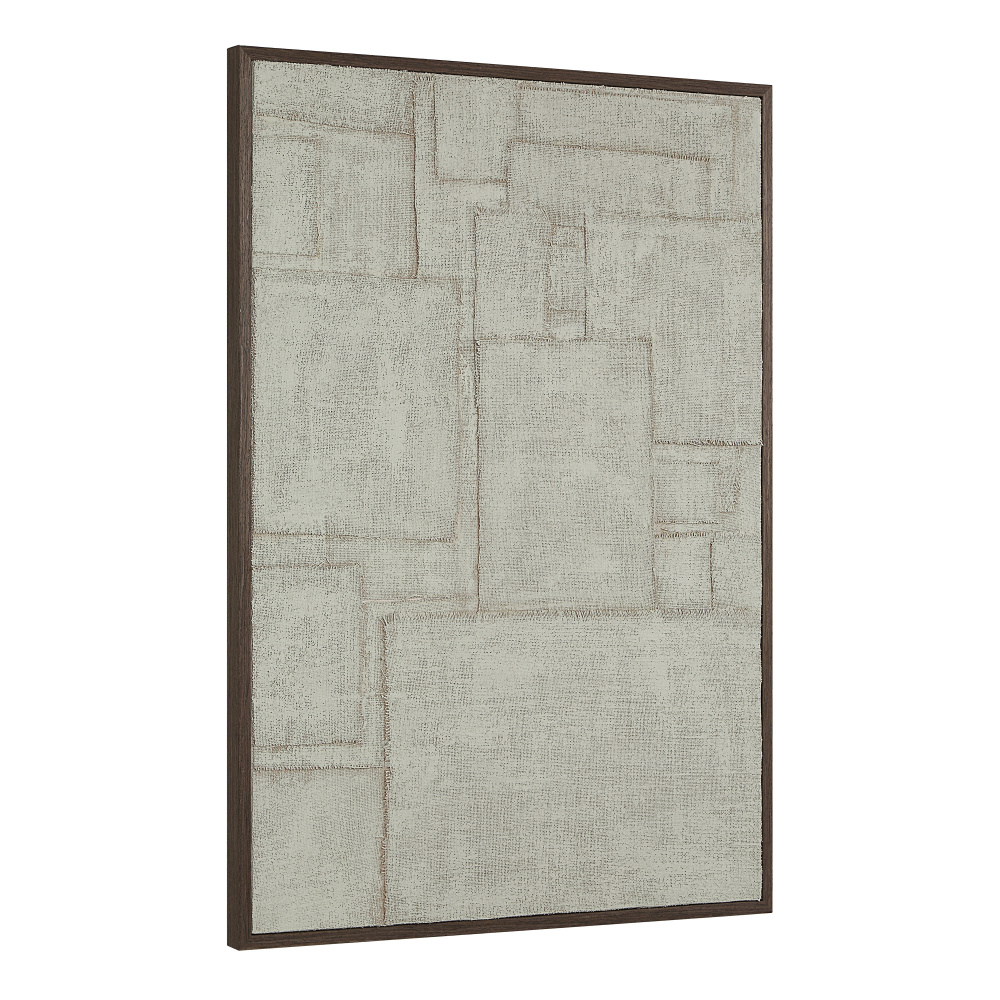Complete the look of any neutral interior with this stylish collage style wall art. Featuring textural burlap touches and a sand beige finish, this hand-painted set of two framed cotton canvas pieces is set to elevate any contemporary home or office.