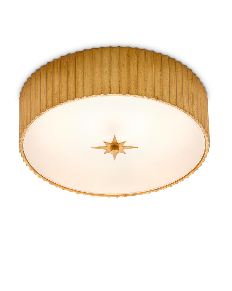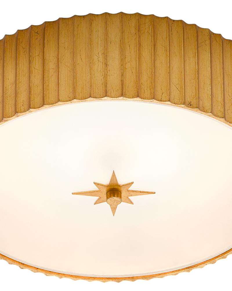 The Caravel Flush Mount is a classic flush-mount design made of composite with a gold leaf finish. We've fitted the Caravel with a frosted glass diffuser, which will soften the light wafting from the integrated LED bulbs.