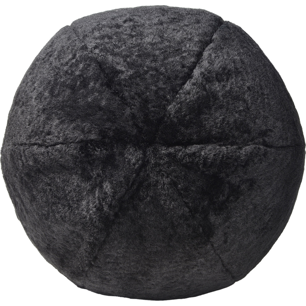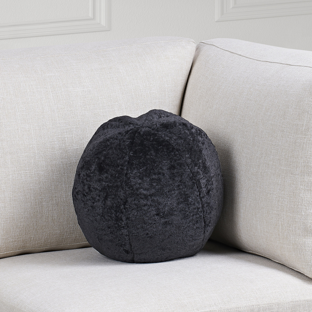A sleek, dramatic take on the standard sphere pouf, this pillow is an optimal fit in the contemporary family room. At 12 by 12 inches with a shearling exterior, it adds new texture and dimension to the throw pillows and furnishings in its midst. With a black polyester finish and feather-down filling, it holds comfort inside and out.