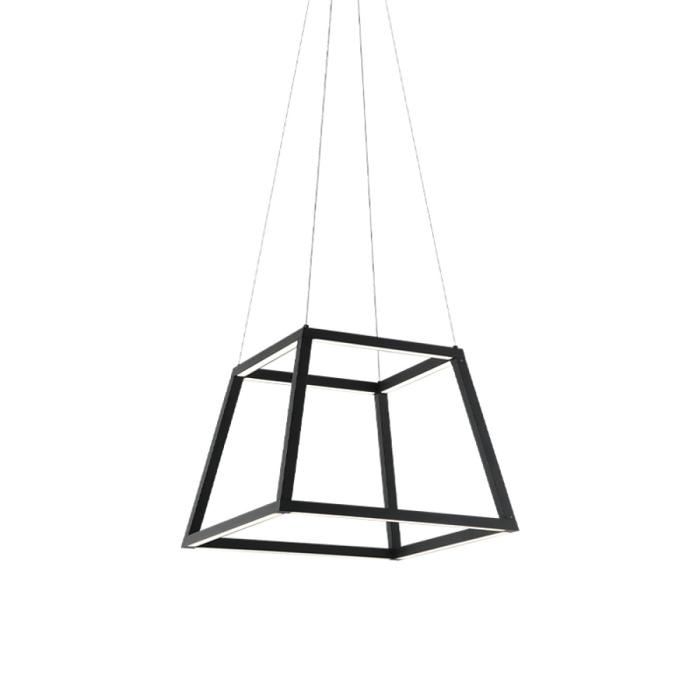 Carlington is simplicity at it’s best. The LED is powered by a driver in the canopy and lights the underside of the metal frame. It is suspended with silver cord and offers a direct uncomplicated vibe.