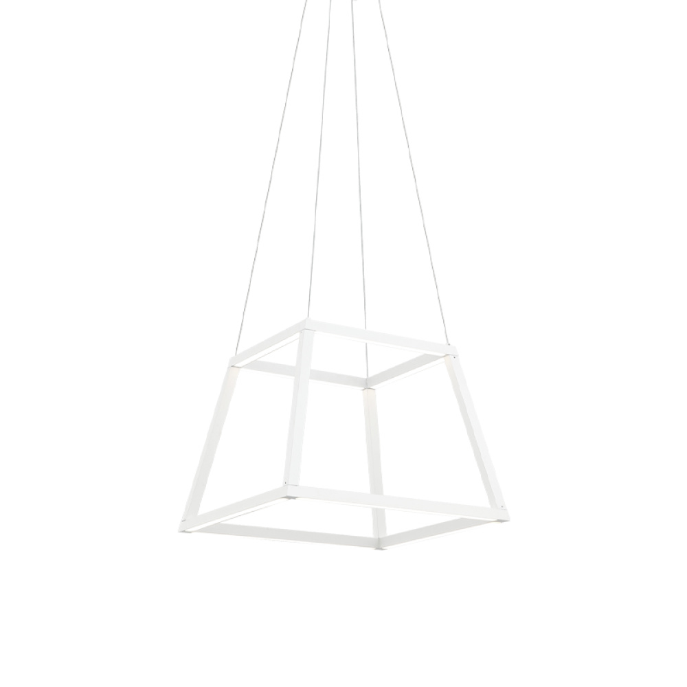 Carlington is simplicity at it’s best. The LED is powered by a driver in the canopy and lights the underside of the metal frame. It is suspended with silver cord and offers a direct uncomplicated vibe.