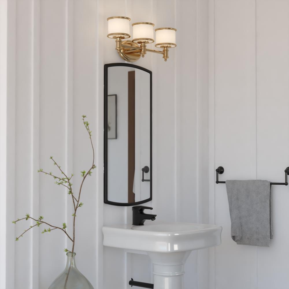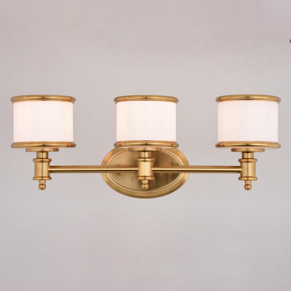 The Carlisle blends formal detailing with relaxed style for a transitional lighting collection that is sure to please. The frosted opal glass cylinders are smartly trimmed in natural brass to match the rest of the fixture. Versatile reversible mounting option lets you install this fixture up or down.