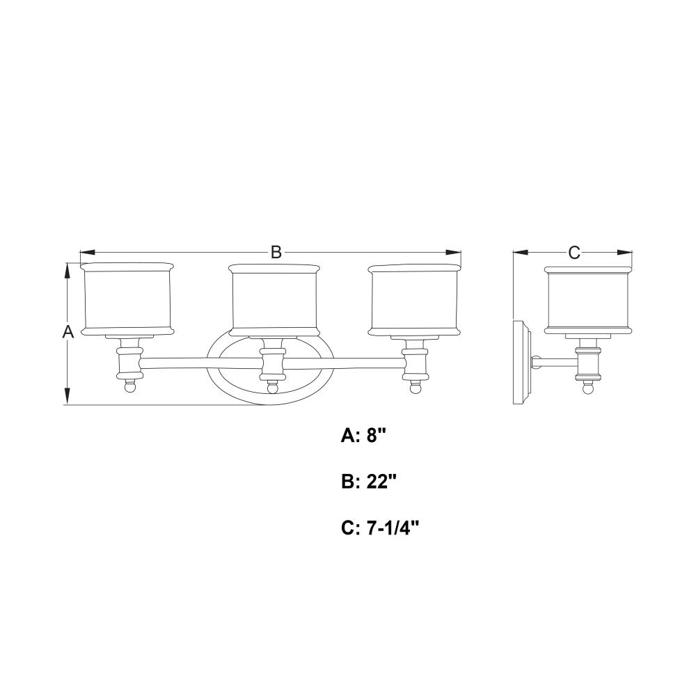 22-in W x 8-in H x 7.25-in D with 7.75-in W x 5.13-in H backplate