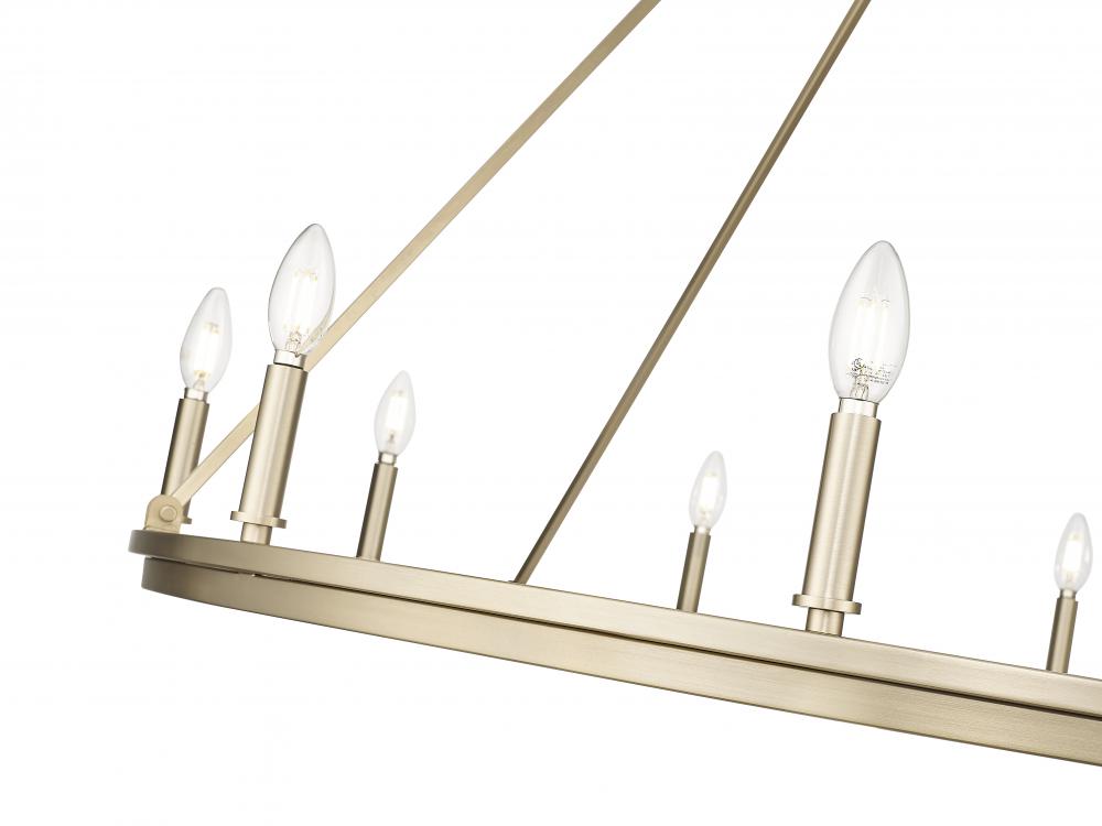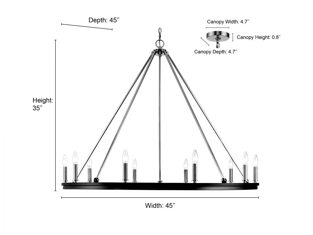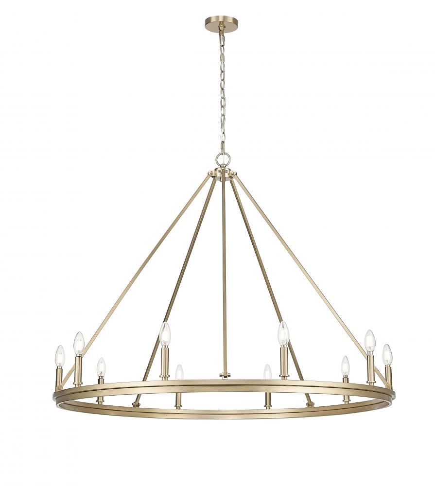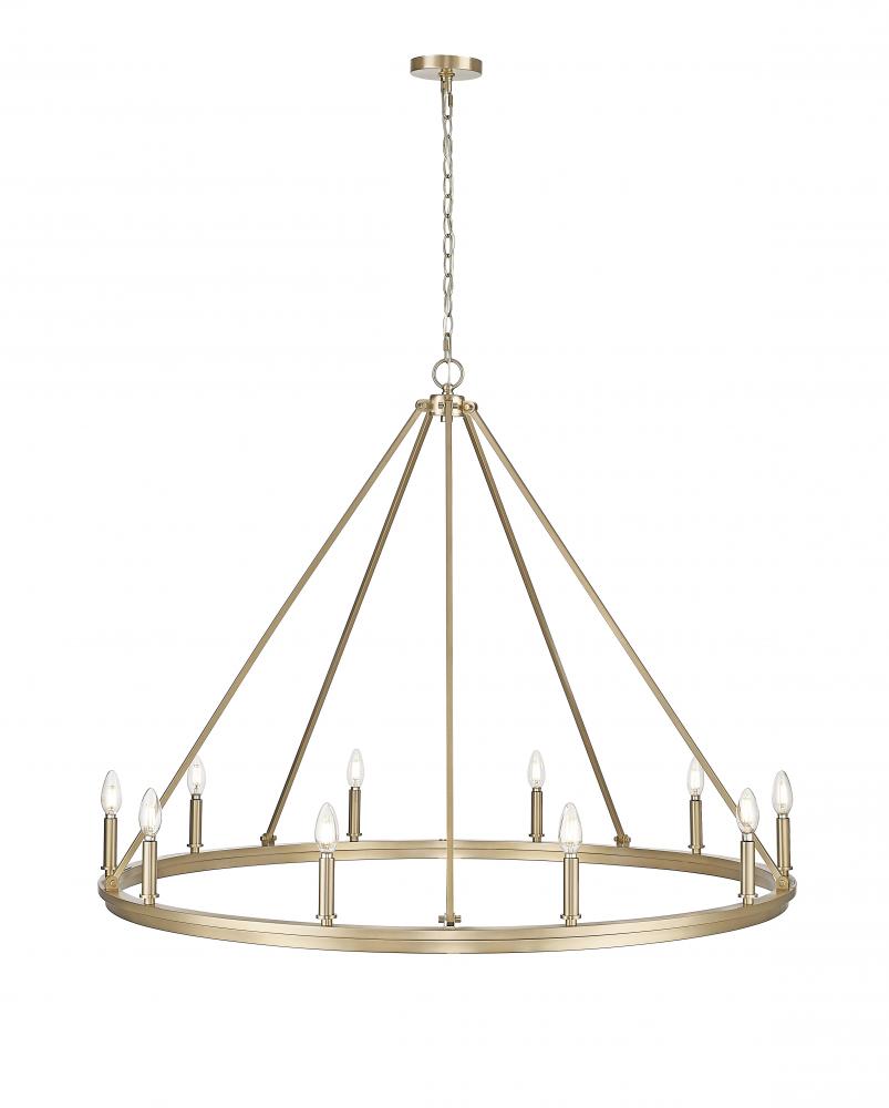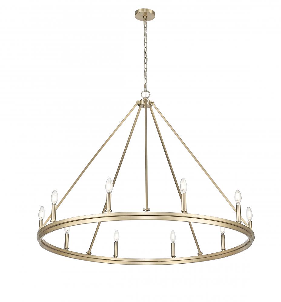Striking the perfect balance of exquisite metalwork and modern lighting needs, the Carruth Family recalls traditional iron chandelier designs in an elegant wagon wheel style. These fixtures are available as 6-, 8-, or 1 options or as a dramatic two-tiered 15-light option. Finished in either modern gold or a blend of matte black and modern gold, these fixtures provide a modern take on this classic design.
