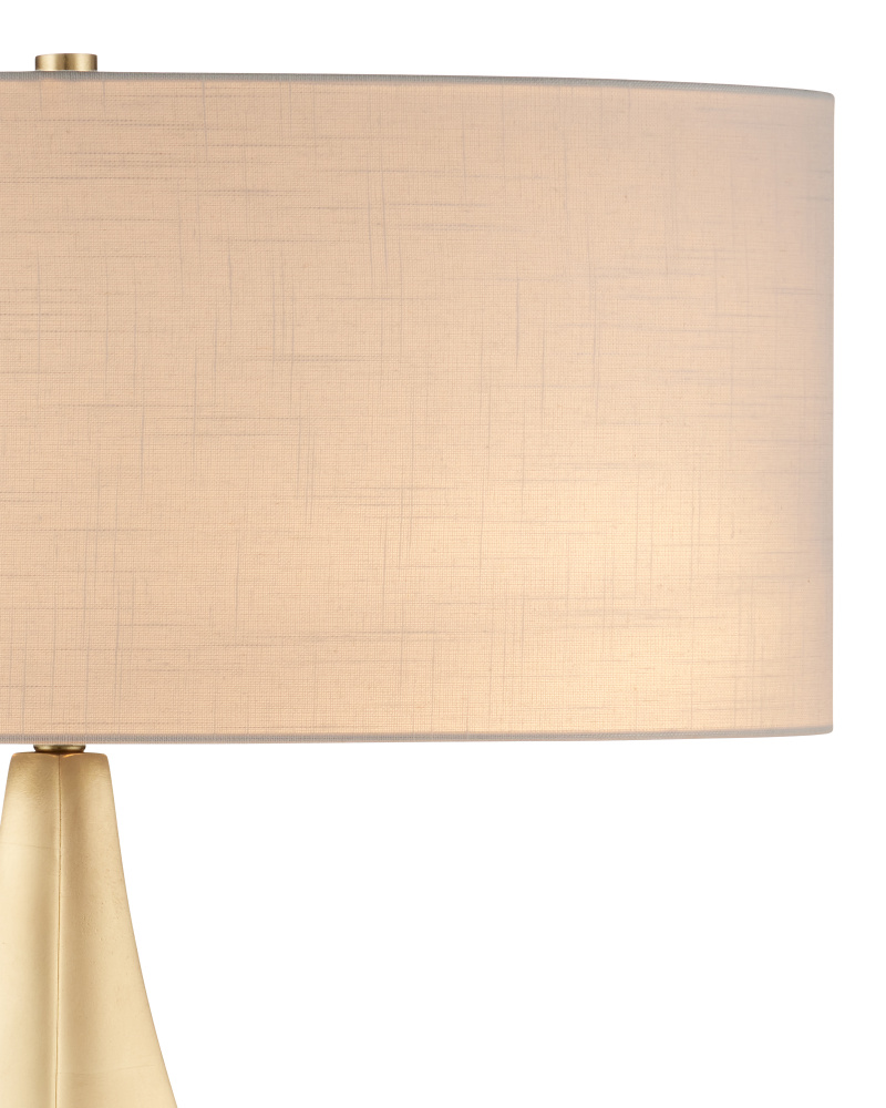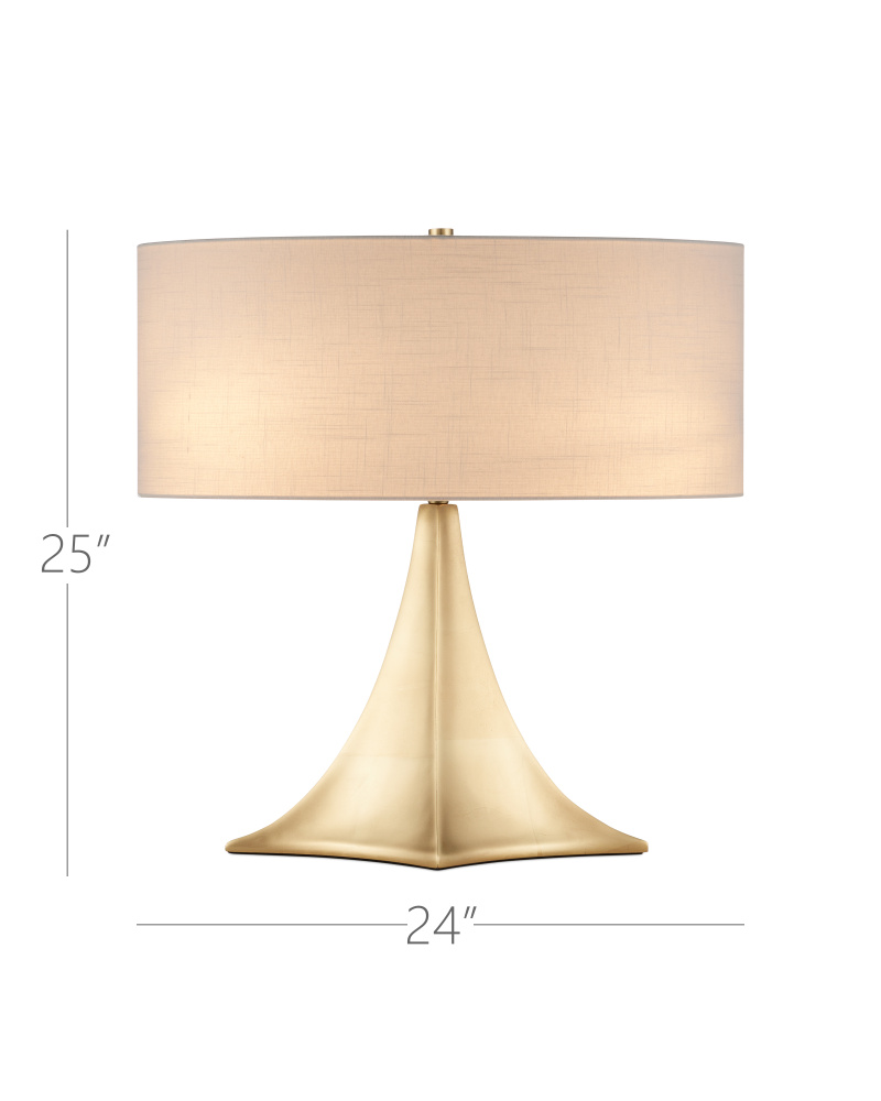 The brilliant gold metallic finish on the Cassia Table Lamp brings its profile a striking richness. Made of composite, the bottom with its stretched diamond shape flows up through four concaves to narrow just before it meets the shade. The softened geometric shape is topped with an oval shade that makes this a great choice for desks or narrow tables like consoles and buffets.