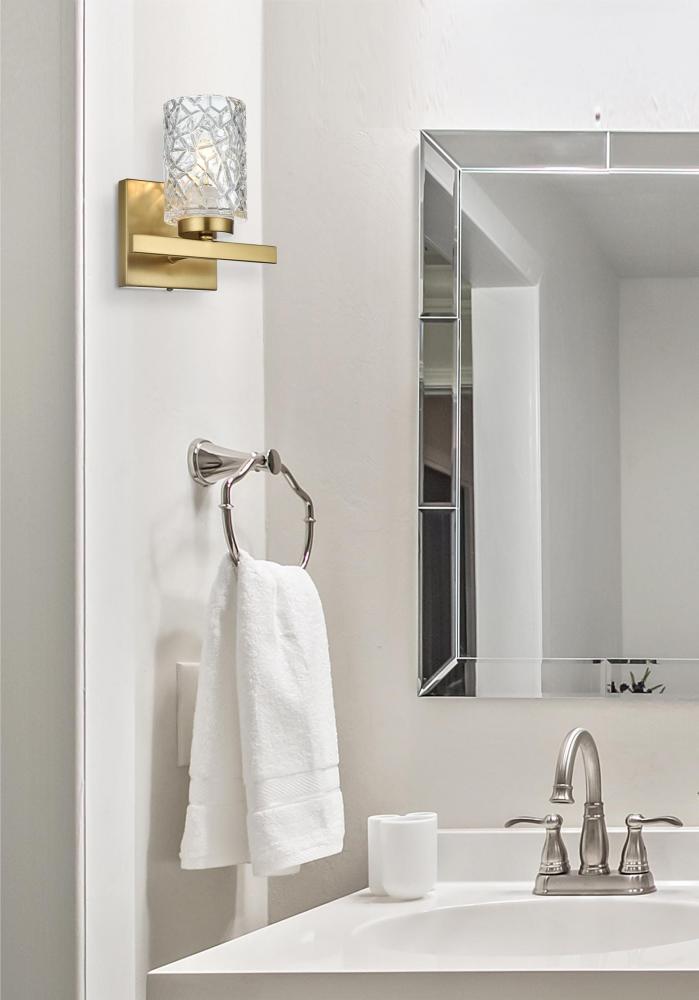 Illuminate your space with elegance and contemporary flair using this striking wall sconce. This versatile lighting fixture comes in four premium finishes—Chrome, Black, Brass, and Satin Nickel—so you can select the perfect option to enhance your room's aesthetic. The distinctive glass shade boasts a stunning, intricately textured design that creates a sophisticated interplay of light and shadow, making this sconce an eye-catching feature whether the light is on or off. Designed with versatility in mind, this sconce can be mounted facing up or down, allowing you to customize the ambiance and highlight specific areas of your space. with an E12 socket that accommodates a wide variety of bulbs (bulbs not included), this fixture provides the freedom to set the mood, whether you prefer soft, subtle lighting or a bright and vibrant glow. Ideal for any room in the home—whether it’s accentuating your hallway, or adding warmth to your bedroom—this wall sconce brings sophisticated style and functional lighting to any setting.