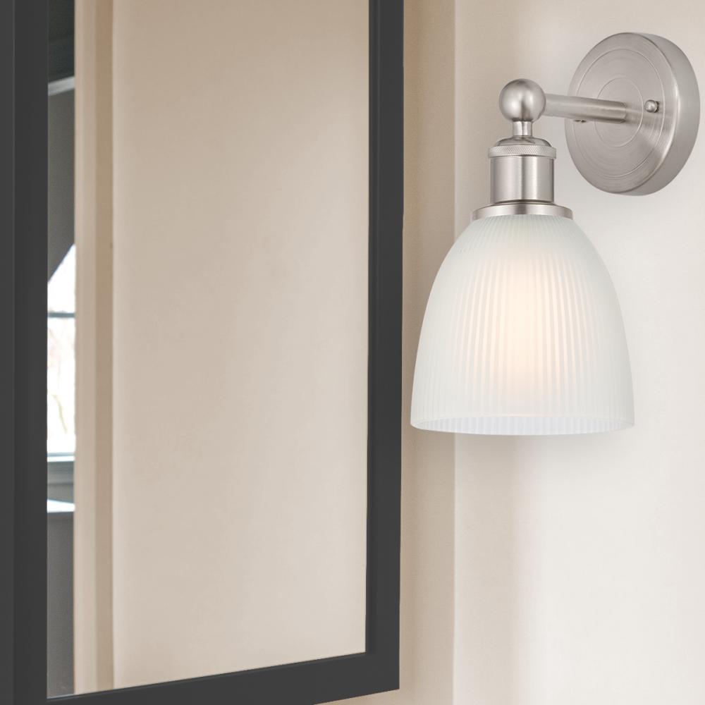 Castile - 1 Light - 6 inch - Brushed Satin Nickel - White Shade - Sconce