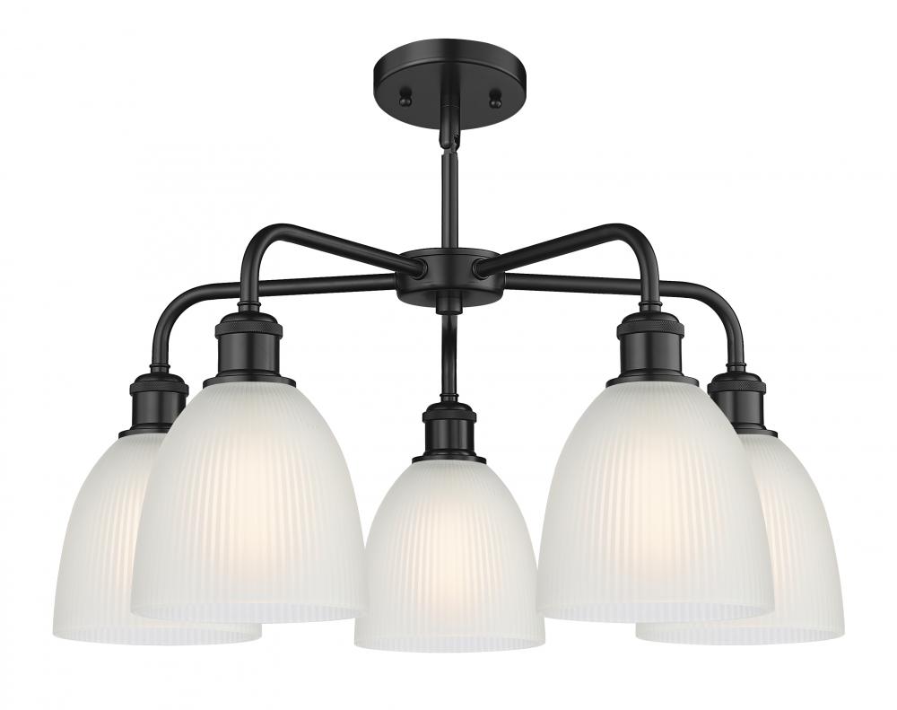 Castile - 5 Light - 24 inch - Matte Black - White Shade - Chandelier