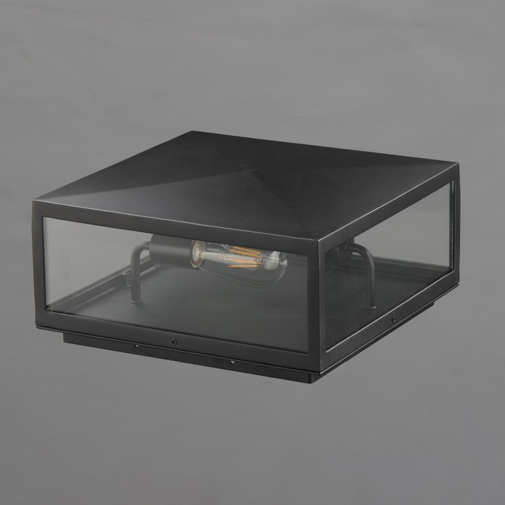 An elongated rectangular shaped design that is both minimalist and industrial. Die cast frames of Dark Bronze support Clear glass panels that provide an unobstructed view of the lantern's interior. Customize with your choice of lamps from vintage to tu