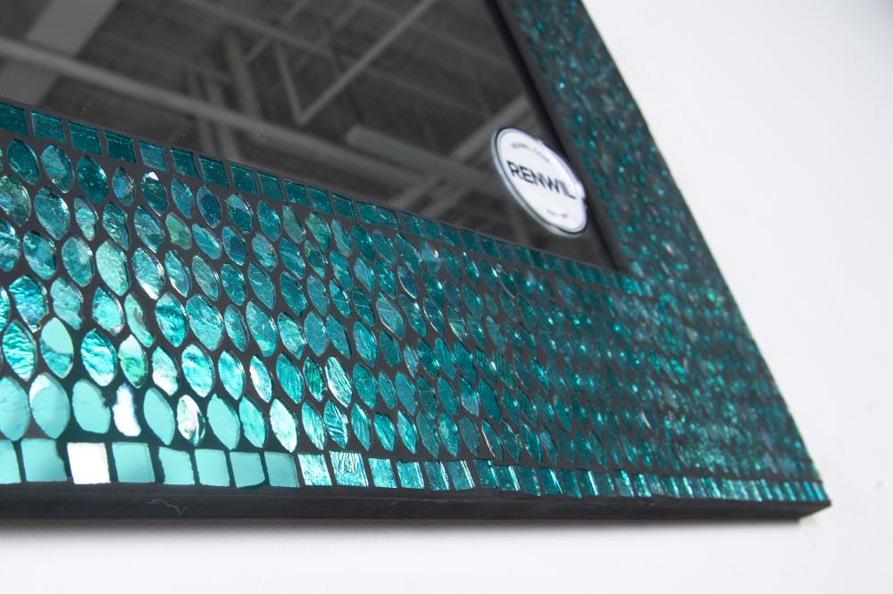This mosaic mirror takes its marvelous coloration from the tropical seas. MDF and glass.