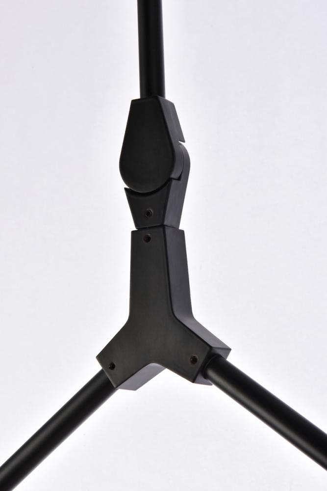 Black connectors supporting a path of flat black rods