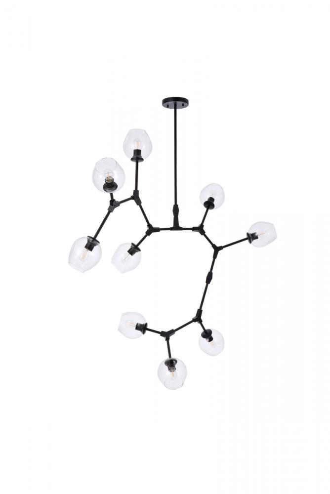 The daring Cavoli pendant lamp in a flat black finish is designed with 9 lights that connect at various angles, illuminating your rooms and ridding them of darkness. The winding paths end with a light encapsulated within a clear shade at each point. This contemporary blend of art and function results in this light that will shine beautifully in any space it adorns.