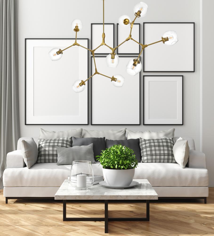 Boasts nine lights with clear glass globe shades, offering a stunning visual display. (Bulbs not included)