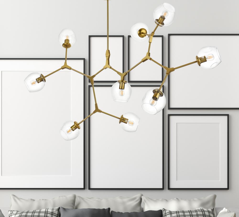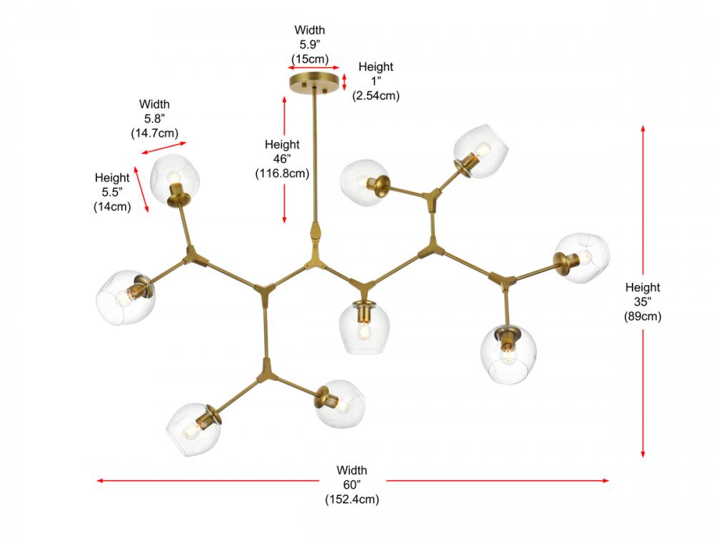 Introducing the Cavoli 60-Inch Chandelier, a perfect fusion of contemporary design and geometric allure. Crafted from durable iron, this visually captivating centerpiece not only adds a sleek modern aesthetic to your space but also ensures a robust and enduring lighting solution. The chandelier holds UL certification, guaranteeing safety and performance adherence. Boasting nine lights with clear glass globe shades, this chandelier offers a stunning visual display, complemented by a dimmable feature for personalized lighting preferences. (Bulbs not included). Illuminate your space with confidence and style.