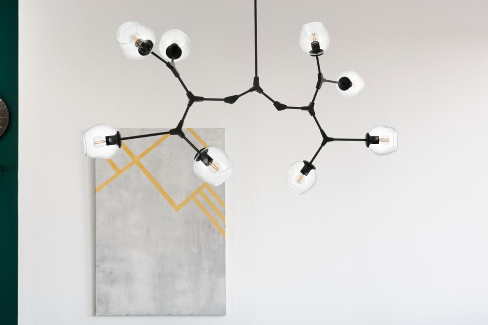 Introducing the Cavoli 74-Inch Chandelier, a perfect fusion of contemporary design and geometric allure. Crafted from durable iron, this visually captivating centerpiece not only adds a sleek modern aesthetic to your space but also ensures a robust and enduring lighting solution. The chandelier holds UL certification, guaranteeing safety and performance adherence. Boasting eight lights with clear glass globe shades, this chandelier offers a stunning visual display, complemented by a dimmable feature for personalized lighting preferences. (Bulbs not included). Illuminate your space with confidence and style.