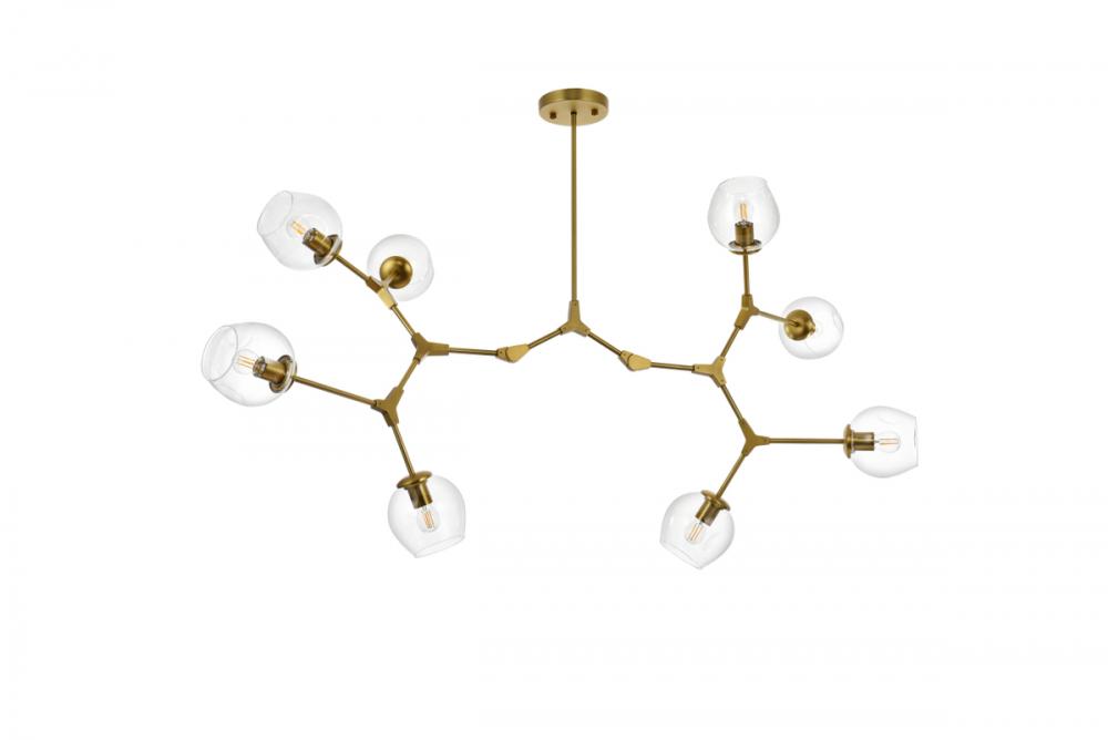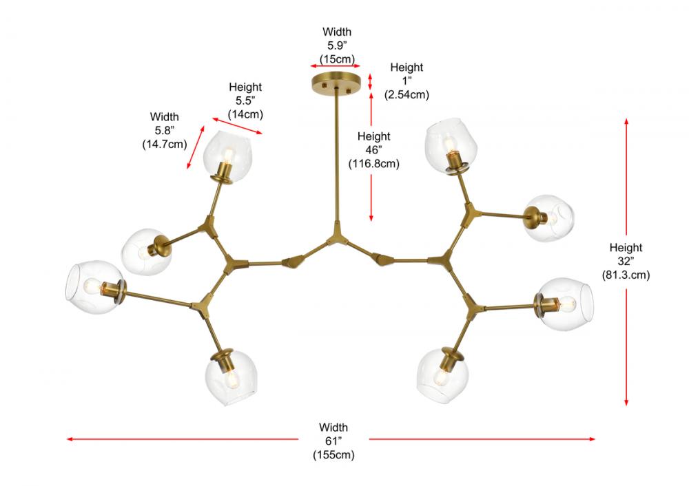 Introducing the Cavoli 74-Inch Chandelier, a perfect fusion of contemporary design and geometric allure. Crafted from durable iron, this visually captivating centerpiece not only adds a sleek modern aesthetic to your space but also ensures a robust and enduring lighting solution. The chandelier holds UL certification, guaranteeing safety and performance adherence. Boasting eight lights with clear glass globe shades, this chandelier offers a stunning visual display, complemented by a dimmable feature for personalized lighting preferences. (Bulbs not included). Illuminate your space with confidence and style.