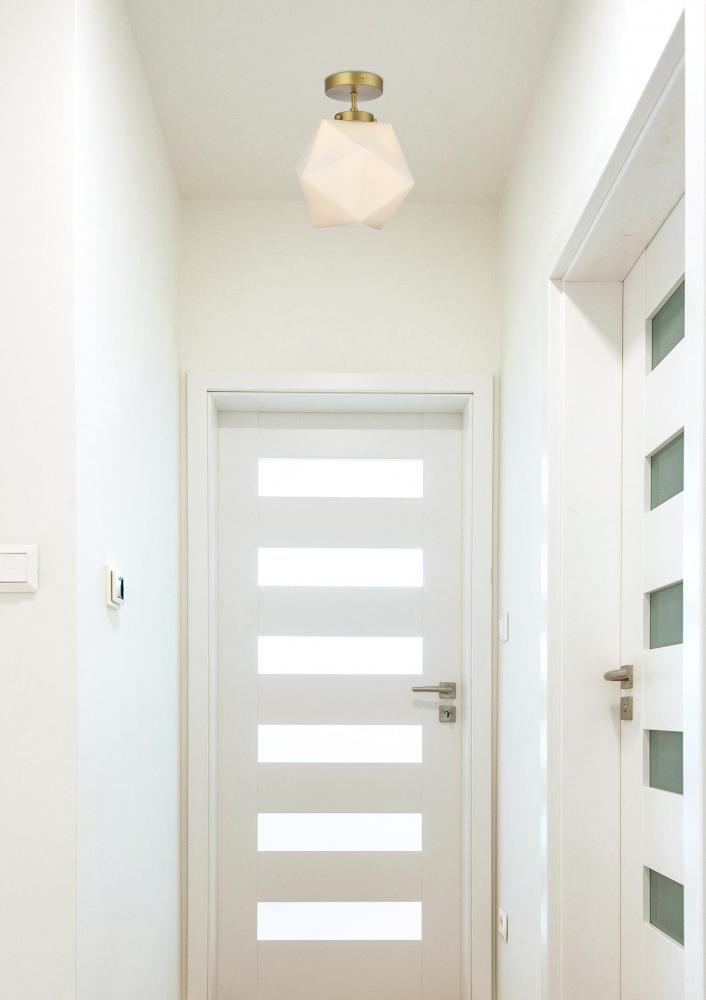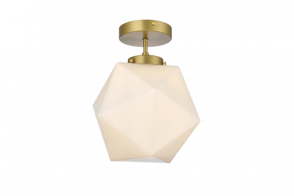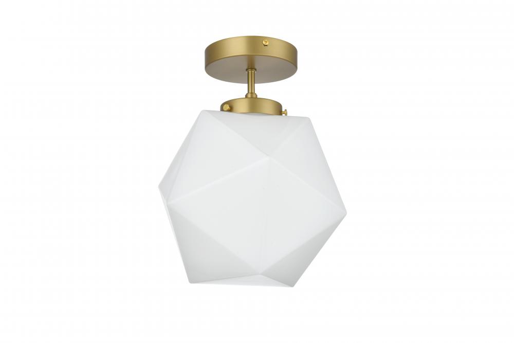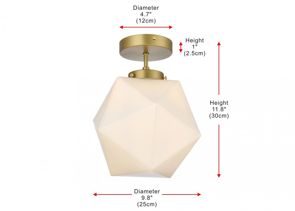 The Lawrence Collection ceiling lamp is the perfect choice if you are looking to add visual interest with functional illumination into the room. The beauty lies in its unique shape and colors. It is available in satin gold, black, brass, or chrome finish with either a clear or white glass shade. This product is dimmable and requires one E26 lamp. Light bulbs not included.