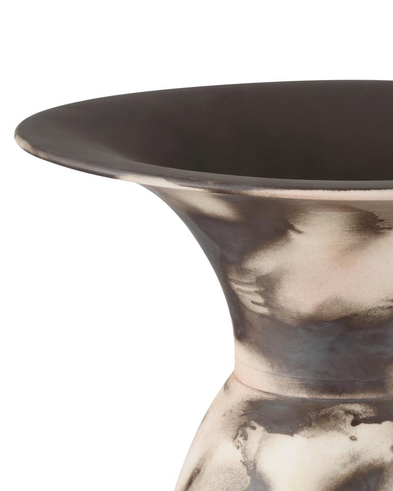 You'll want to see the Celestial Vase from every angle, as a different pattern will come into view depending upon the direction from which it is seen. Made of porcelain, the morphing patterns hold hints of black, pale green, and pale red hues. This is a hand-thrown creation with motifs that could easily represent the whole of the cosmic universe.