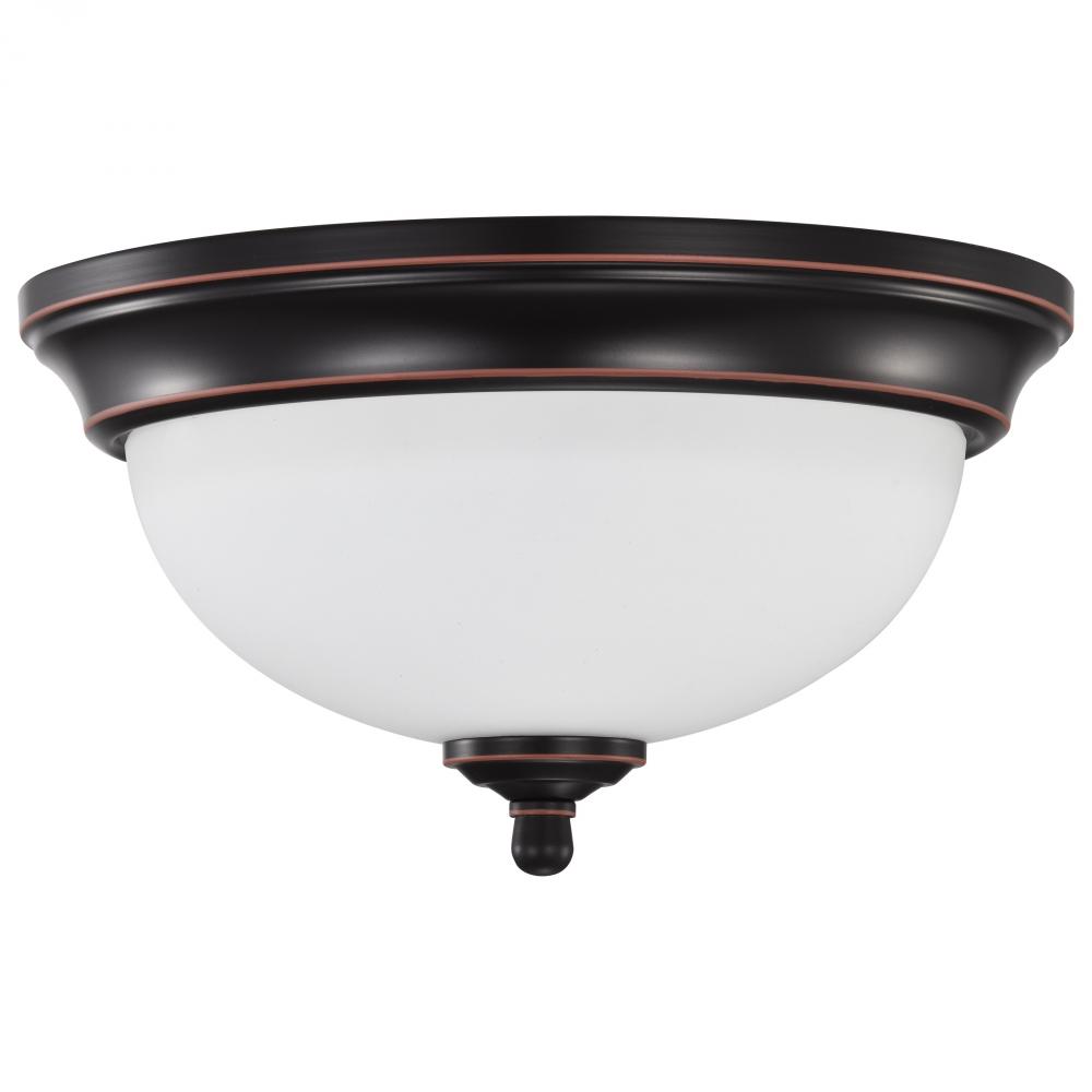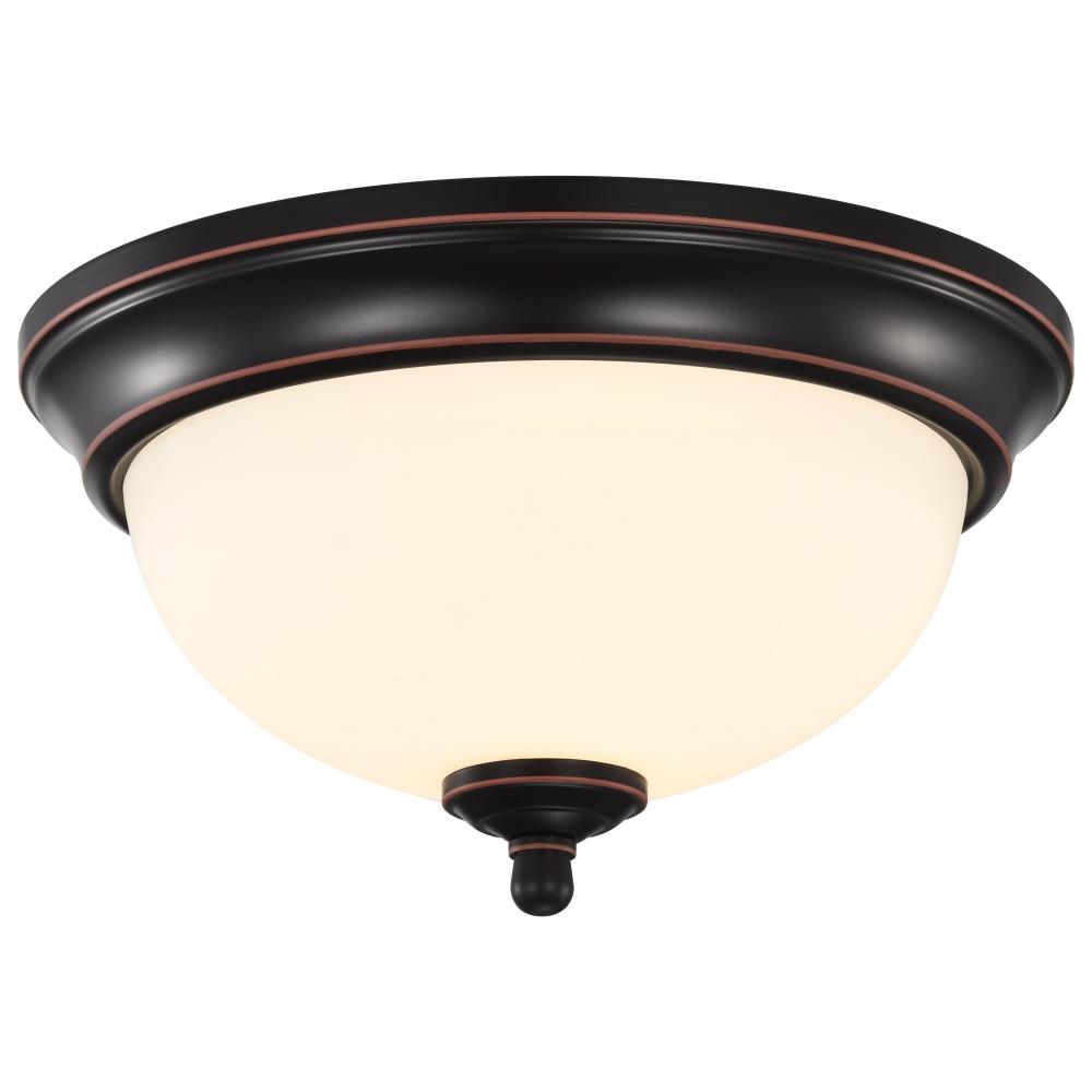 Center Lock 11 Inch LED Flush Mount; 19 Watt; 3000K; Mahogany Bronze Finish; Frosted Glass