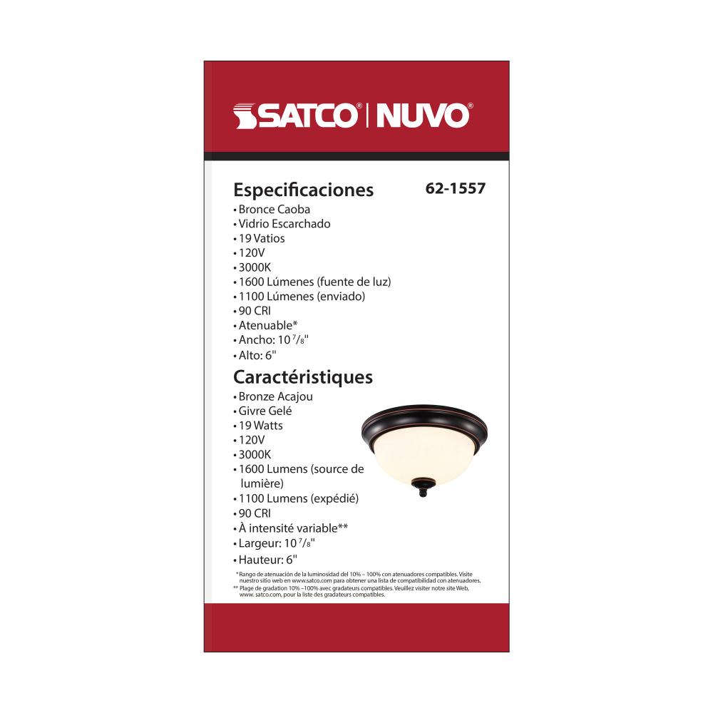 SATCO NUVO'S 62-1557 LED 19 watt, 11-inch flush mount offers the perfect blend of integrated LED technology and utility-style lighting. This simple flush mount illuminates a dark stairwell, hallway or laundry room to name a few applications. The froste