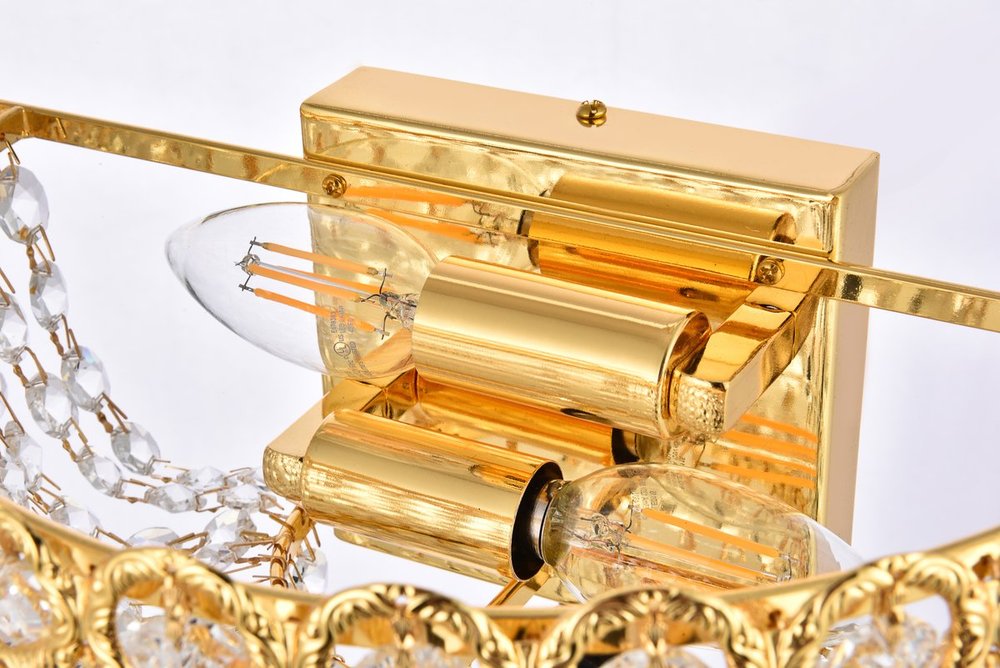 Century 2 light Gold Wall Sconce Clear Royal Cut Crystal