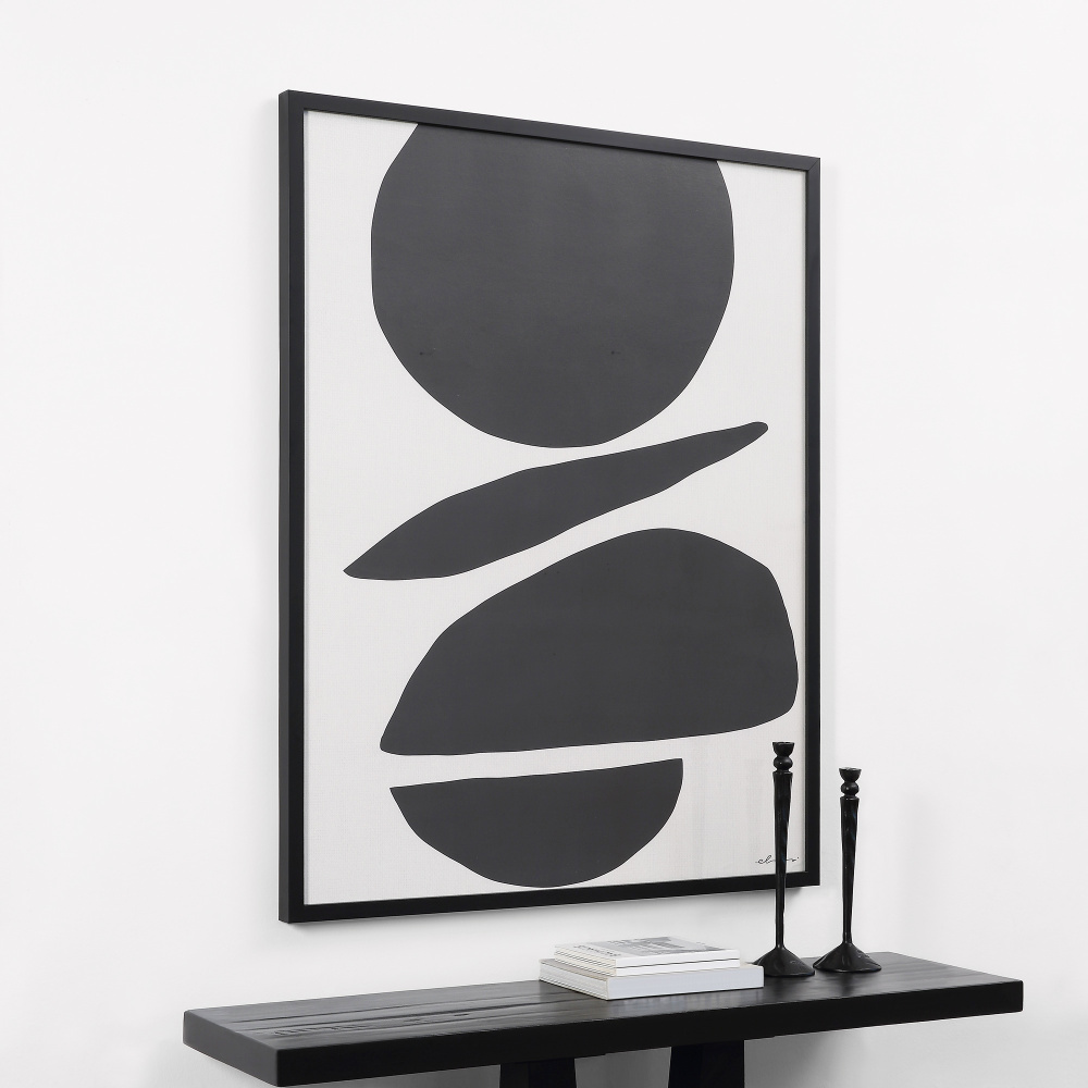 Playful yet poised, this large framed canvas print has a timeless quality that elevates the contemporary home interior. Hanging in an entryway or hallway space, this work of wall art sets the tone for the room without overwhelming the space. When paired with luxe furnishings and decor in the living room, home office or bedroom space, the print fosters a sense of ease and creative thinking.