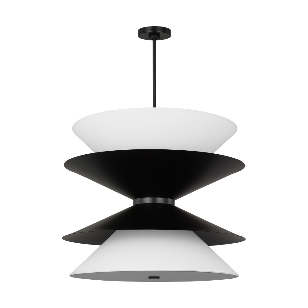 Chambord is comprised of layers of aluminum in varying sizes that direct the light down through a silk screen diffusor