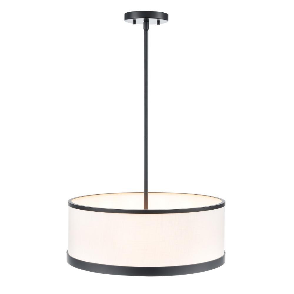 This elegant pendant light from the “High Street” collection, designed by Kevin Kraemer, radiates understated elegance. The hardback linen shade, in a soft eggshell white hue, casts a warm, inviting glow, perfect for elevating any space. Encased in sleek black framing metalwork, the design balances contemporary charm with understated luxury. This model comes with extra rods for any height preference. This model can be a pendant or a close to ceiling semi-flushmount.