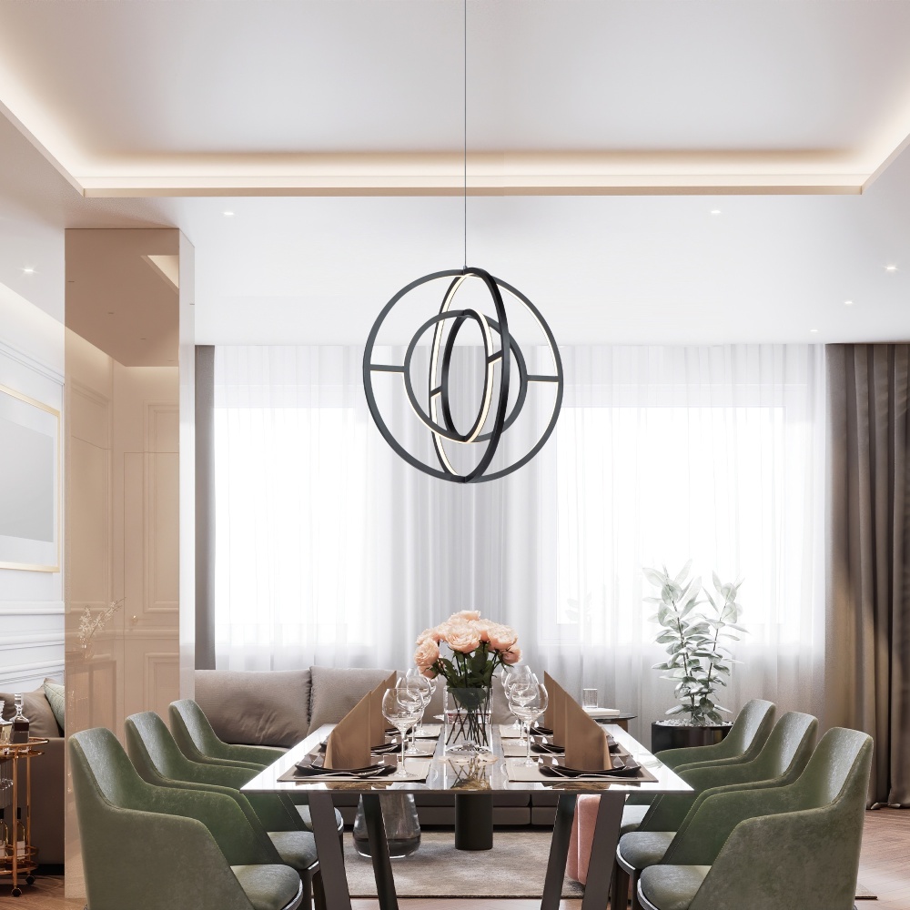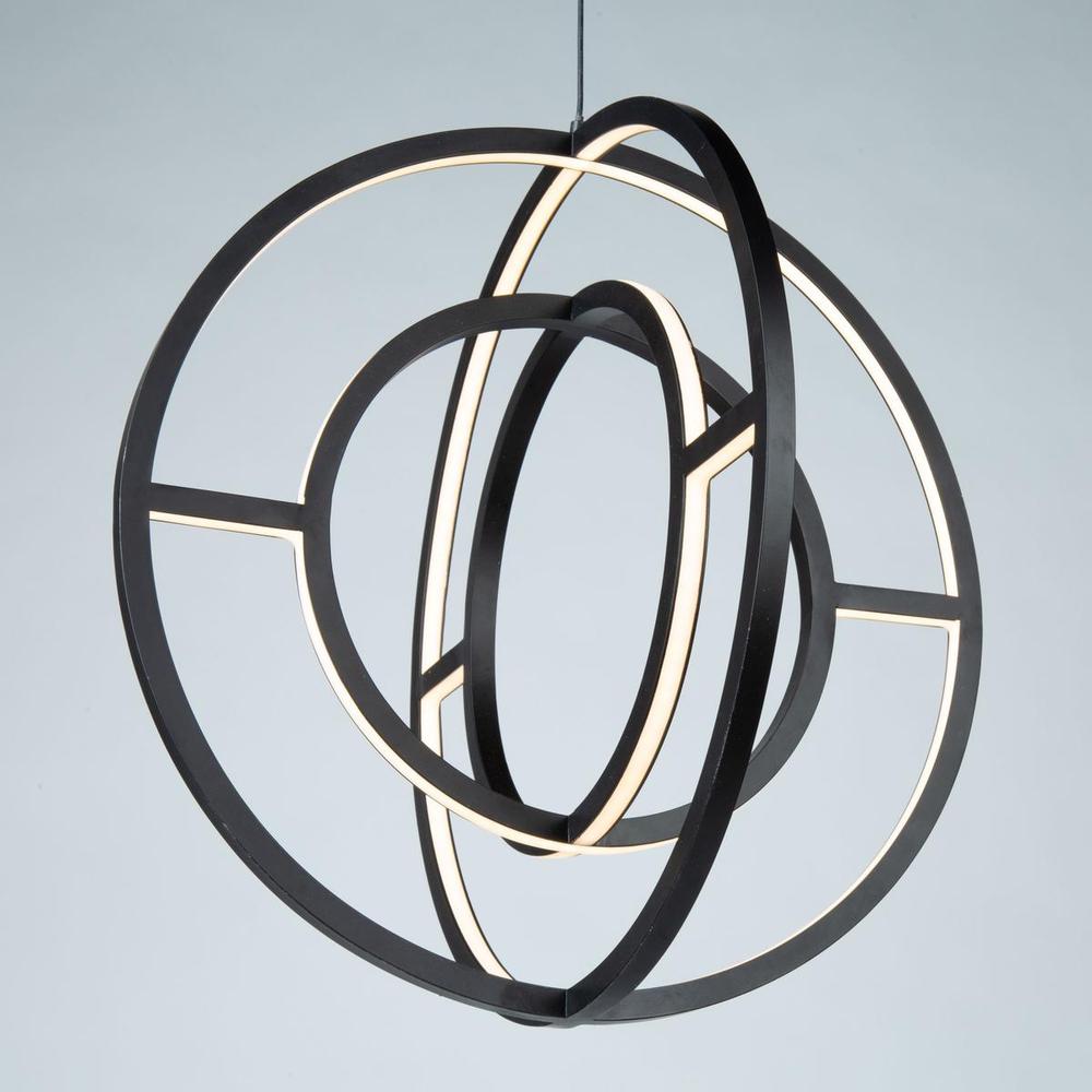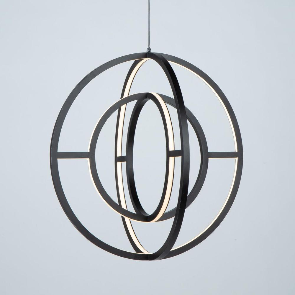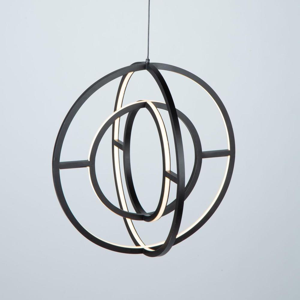 The "Celestial" collection double orb is truly unique and stylish. The matte black finish on this double frame is eye catching. Illuminated by bright energy efficient integrated LED, this chandelier would fit in any surrounding, especially in transitional to contemporary settings. Larger 22" size also available.