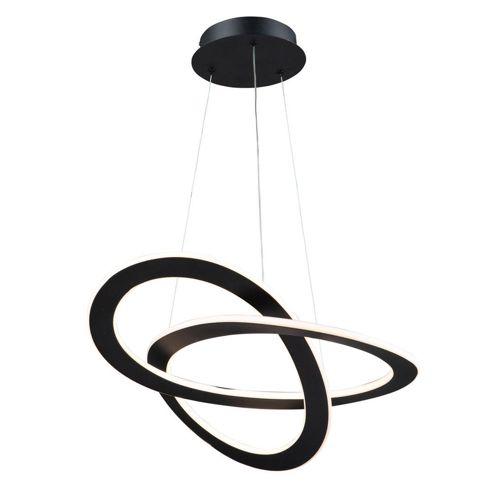 The "Wave Collection" is named after its curvy organic design. A perfect addition to any modern to transitional setting. The chandelier is finished in a semi gloss black and is suspended by aircraft type cables. It is illuminated by bright energy saving LED technology. This smaller chandelier has a big brother and also a matching semi flush to match.