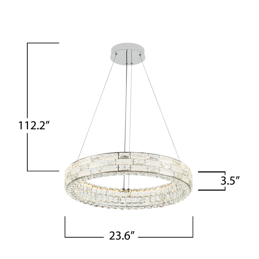 Glistening like a crown of starlight, this LED crystal chandelier from the “Elegance” collection offers a breathtaking harmony of luxury and functionality. Its polished nickel frame embraces a dazzling array of crystals, while the 3CCT switch allows you to tailor the ambiance with warm, neutral, or cool light (3K, 4K, 5K). Suspended gracefully on aircraft-type cables with an intuitive “push-pin” system, it promises both beauty and effortless adjustment for any setting.