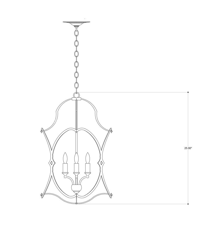 The Charisma Small Lantern has a lithesome shape in a lovely French black finish. Where the arcing ovals meet, tiny diamond shapes bring added charm to the black lantern that will invite classic Italian flair into interiors. Adjustable from 30" to 99" with use of included chain/rod kit/cable. If your space calls for a longer drop, additional chain/rods/cable is available for purchase.