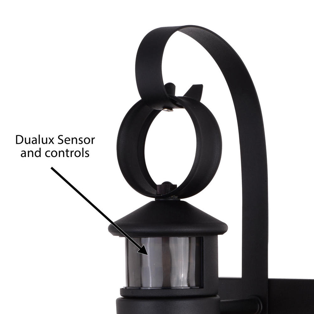 An iconic nautical-style design, the Chatham collection will bring a coastal New England feel to your home's exterior. Now with a textured black finish the Chatham is even more impressive. Dualux patented dual-level security lighting is outdoor lighting made smarter—brighter light at dusk, dimmer at night, brightening instantly when it detects motion. Designed to reliably and effortlessly enhance your home’s beauty, security and efficiency from dusk to dawn with its built in motion sensor and photocell. This fixture works with any dimmable incandescent or halogen bulb and many dimmable LED bulb models.