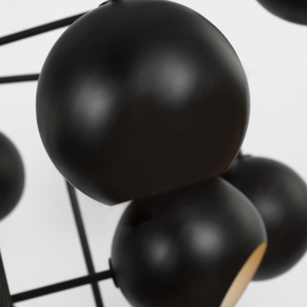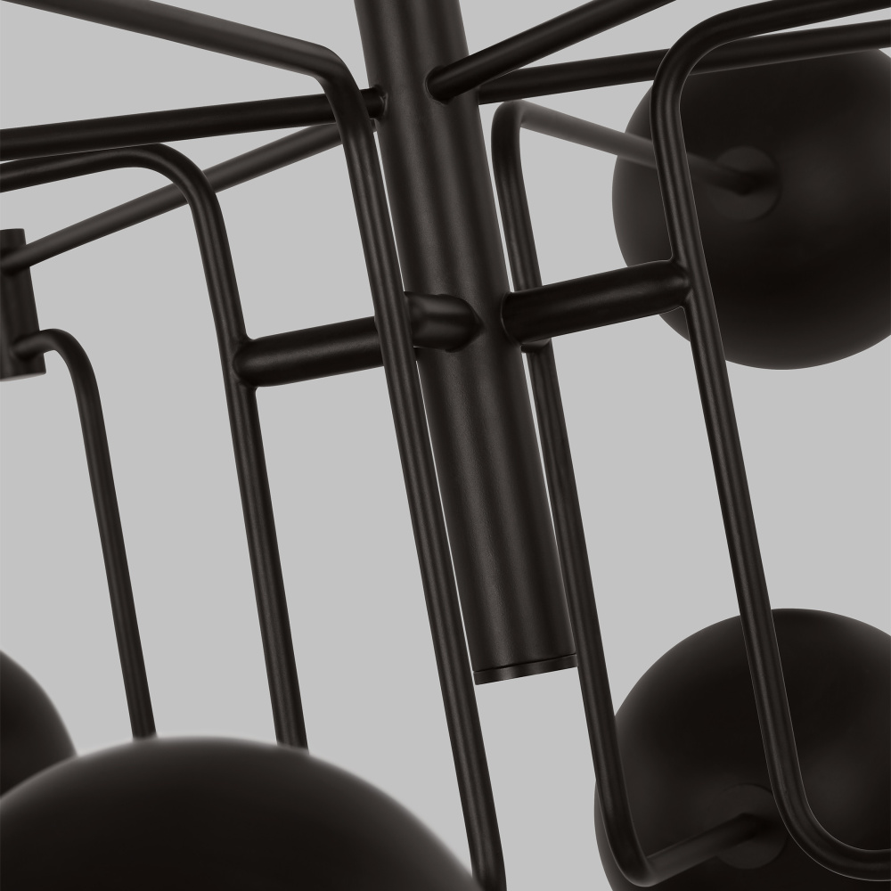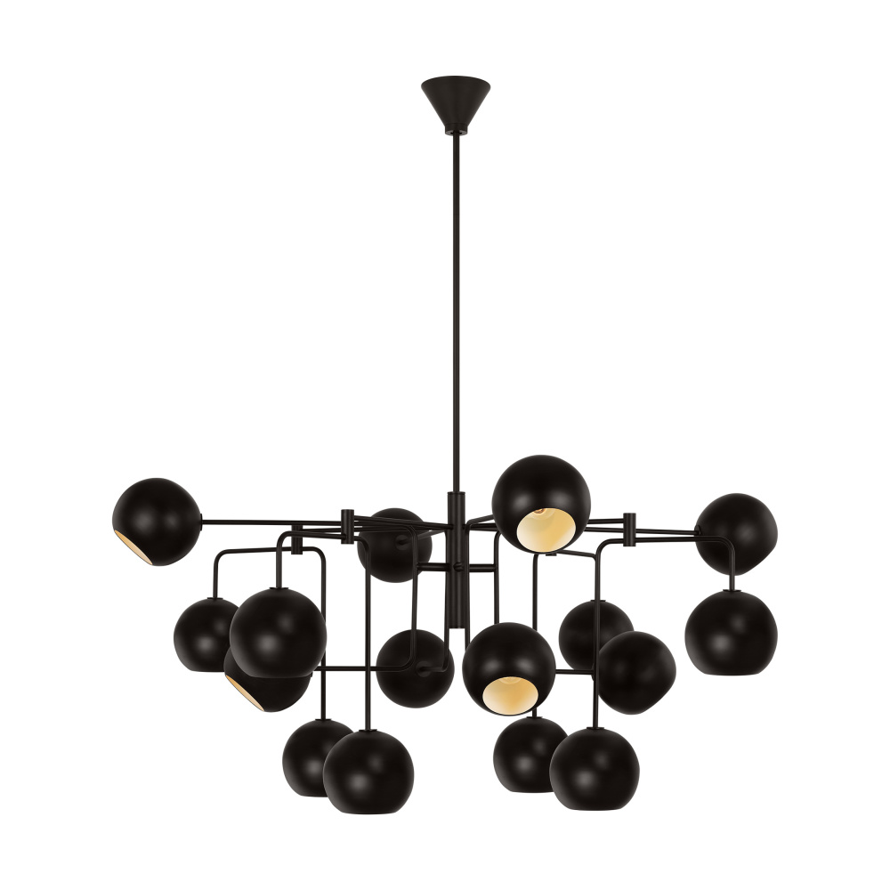 Designed by Christiane Lemieux, the Chaumont sixteen light multi tier chandelier in aged iron provides abundant light to your home, while adding style and interest. Inspired by the mobiles of Calder and classic French mid-century forms, the multi-directional shades suggest movement. This series includes 3 large chandeliers and a task sconce, all available in a dramatic Aged Iron living finish which will patina over time.