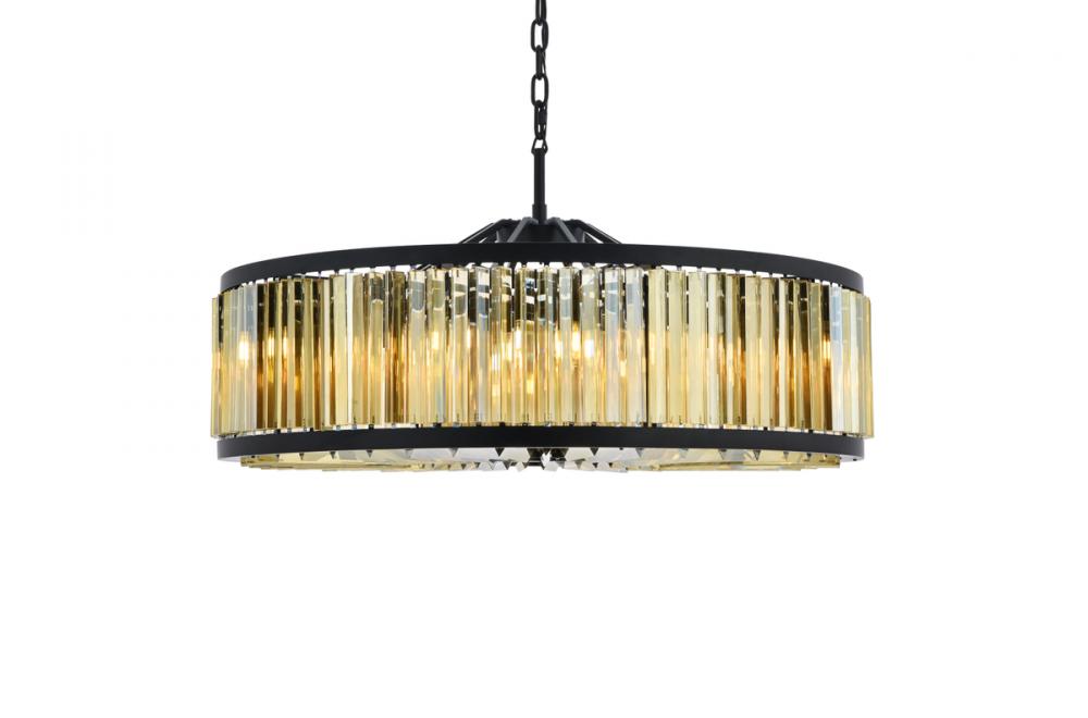Chelsea 10 light Matte Black Chandelier Golden Teak (Smoky) Royal Cut Crystal