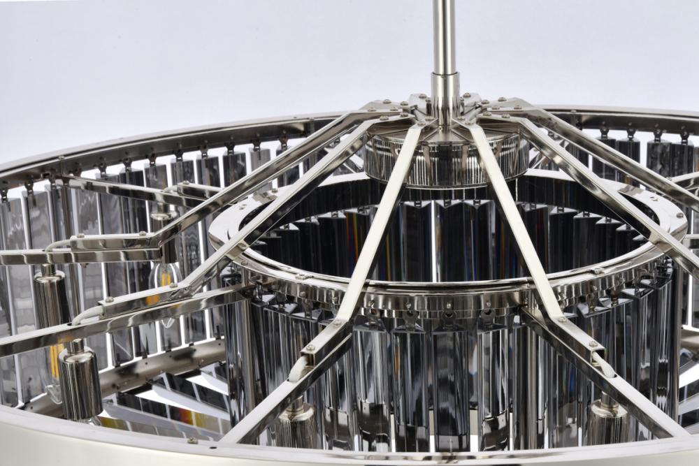 An infinity of light, caught in a circle of crystal bars in clear, golden teak, or Silver shade, the Chelsea collection will bring a shimmer of brilliance to your home. The circular steel frame in a mocha-brown or polished-nickel finish lends subtle strength to this chandelier design. The Chelsea collection adds transitional grace especially to a kitchen, bedroom, or dining room.