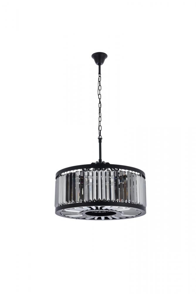 Chelsea 8 light Matte Black Chandelier Silver Shade (Grey) Royal Cut Crystal
