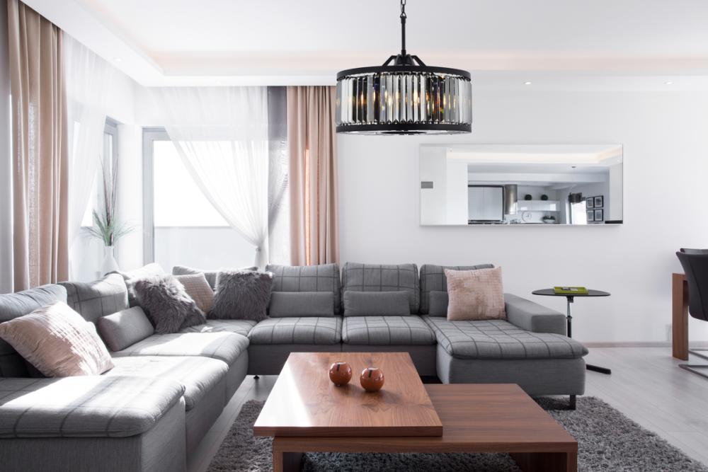 Lamp features a diameter of 28 inches, a height of 15.5 inches, a minimum hanging length of 22 inches, a maximum hanging length of 75.5 inches, and requires 8 candelabra bulbs