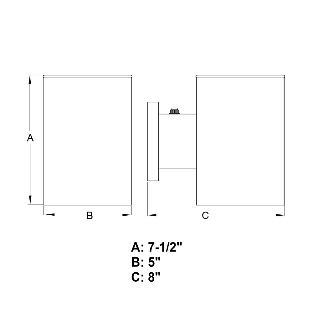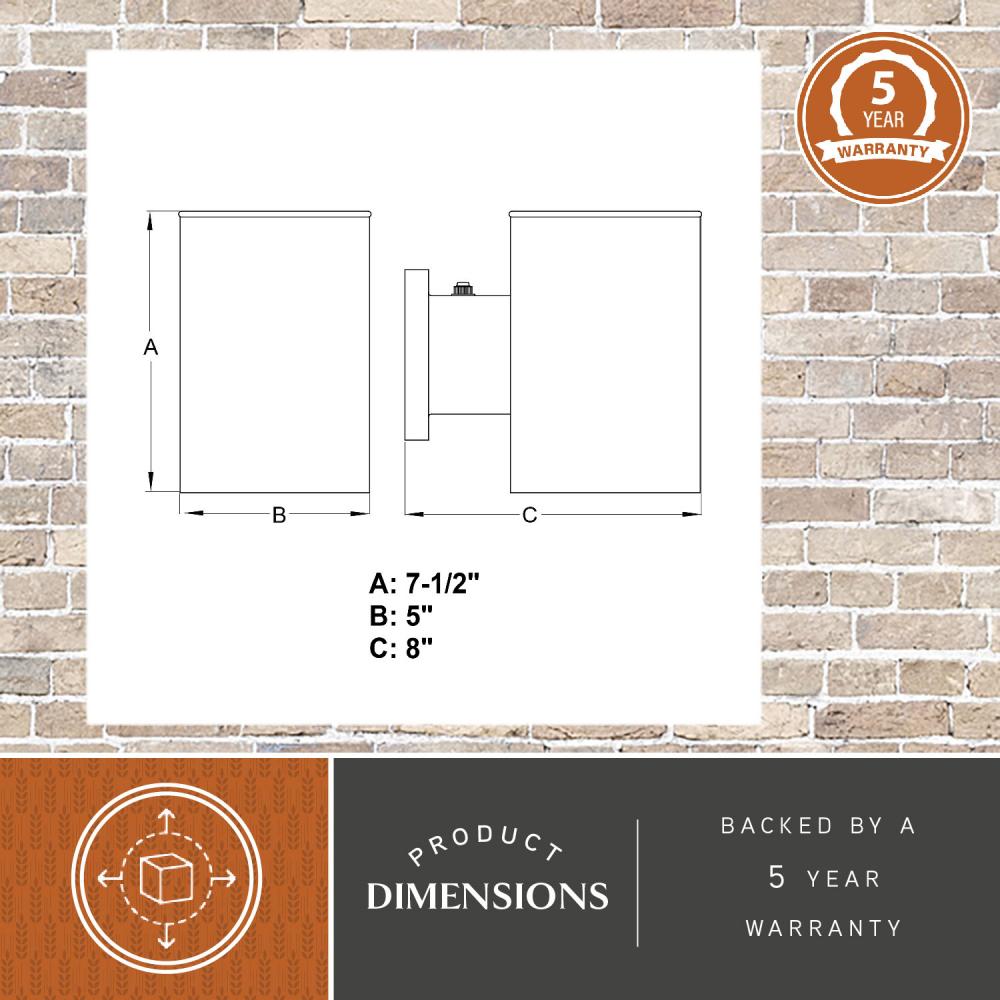 Measures 5-in W x 7.5-in H x 8-in D with a 4.61-in W x 4.61-in H x 2.91-in D backplate