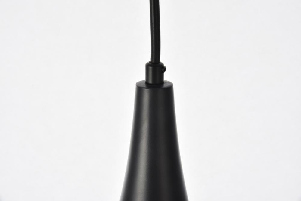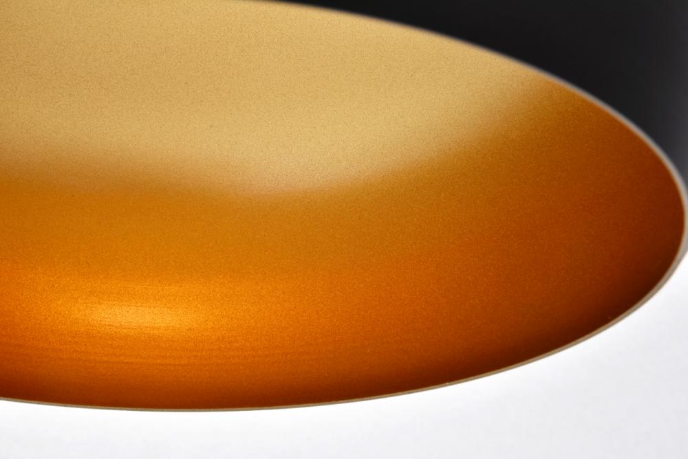 The dramatic, sloped shade with black aluminum finish enhances the fixture’s visual uniqueness