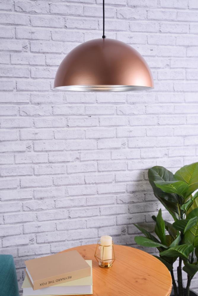 Fixture features a diameter of 15.5 inches, a height of 8 inches; adjustable cord height
