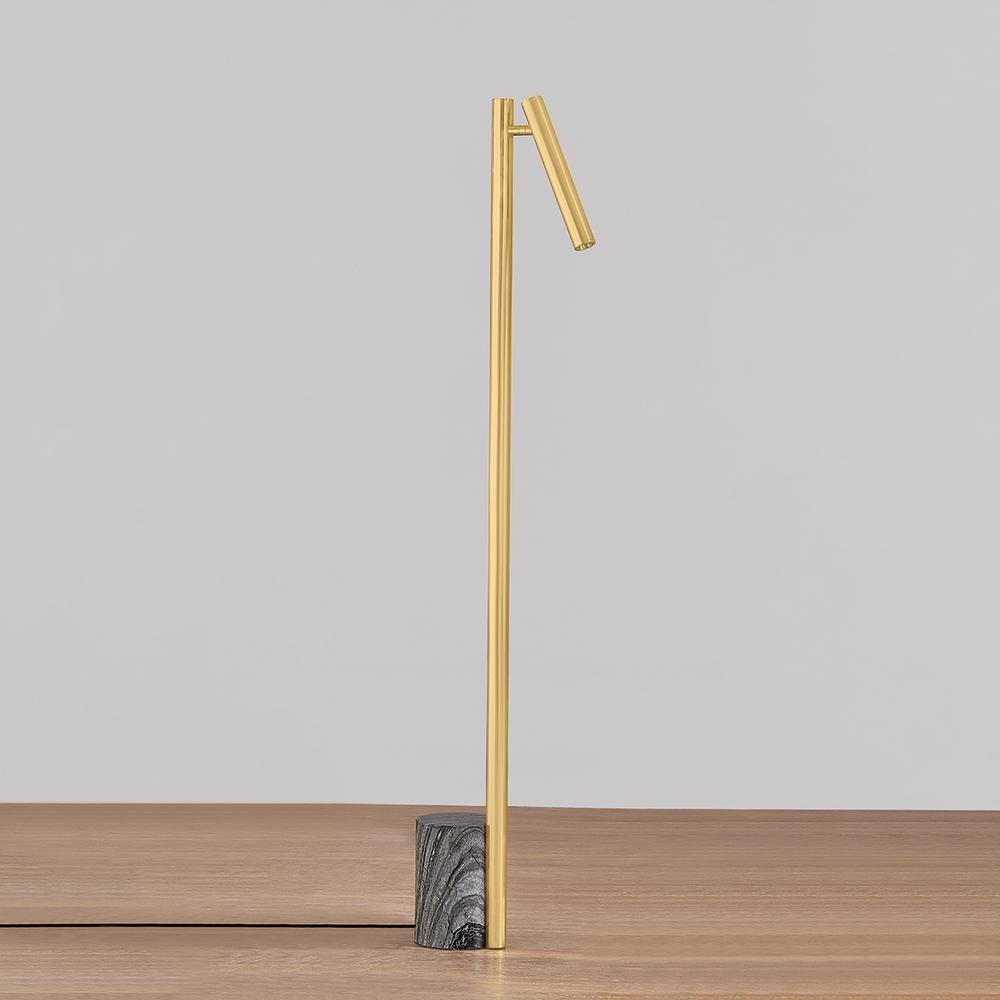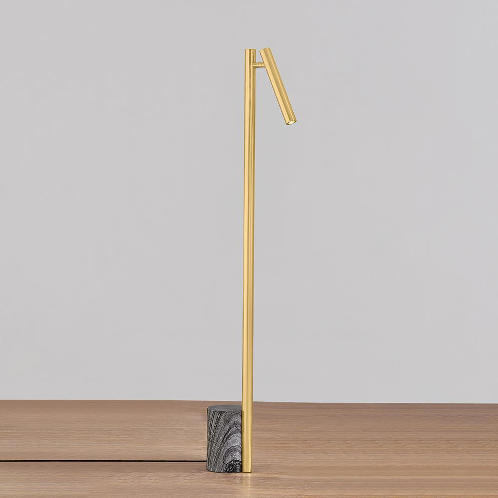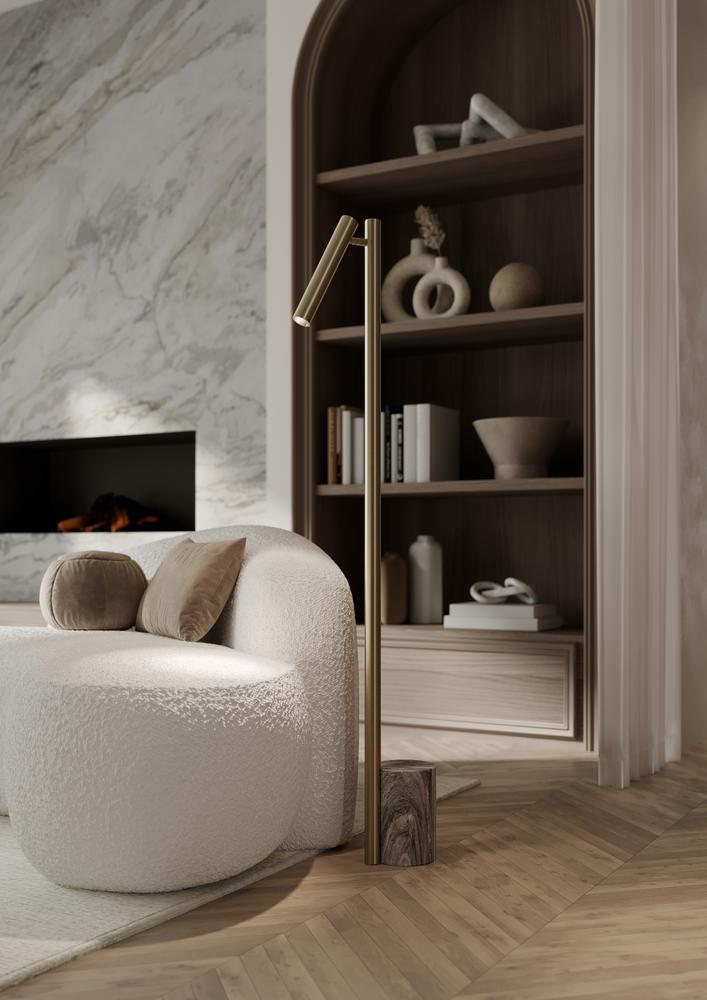 Incorporating CSL’s innovative ‘Whisper’ technology, Circleville cuts a sleek figure in Aged Brass. While it might read as industrial, the elongated tube forms lean towards modernist aesthetics. The articulating shade allows precise control to create a powerful spotlight where needed. Available as a sconce and floor lamp.
