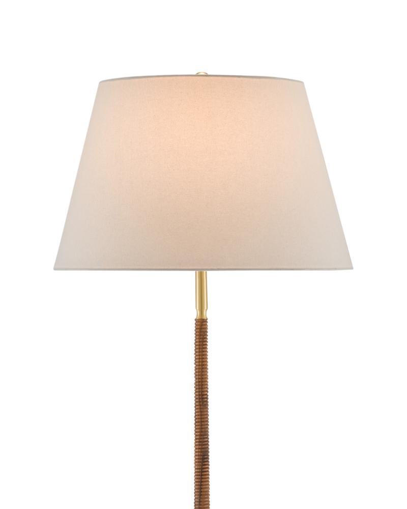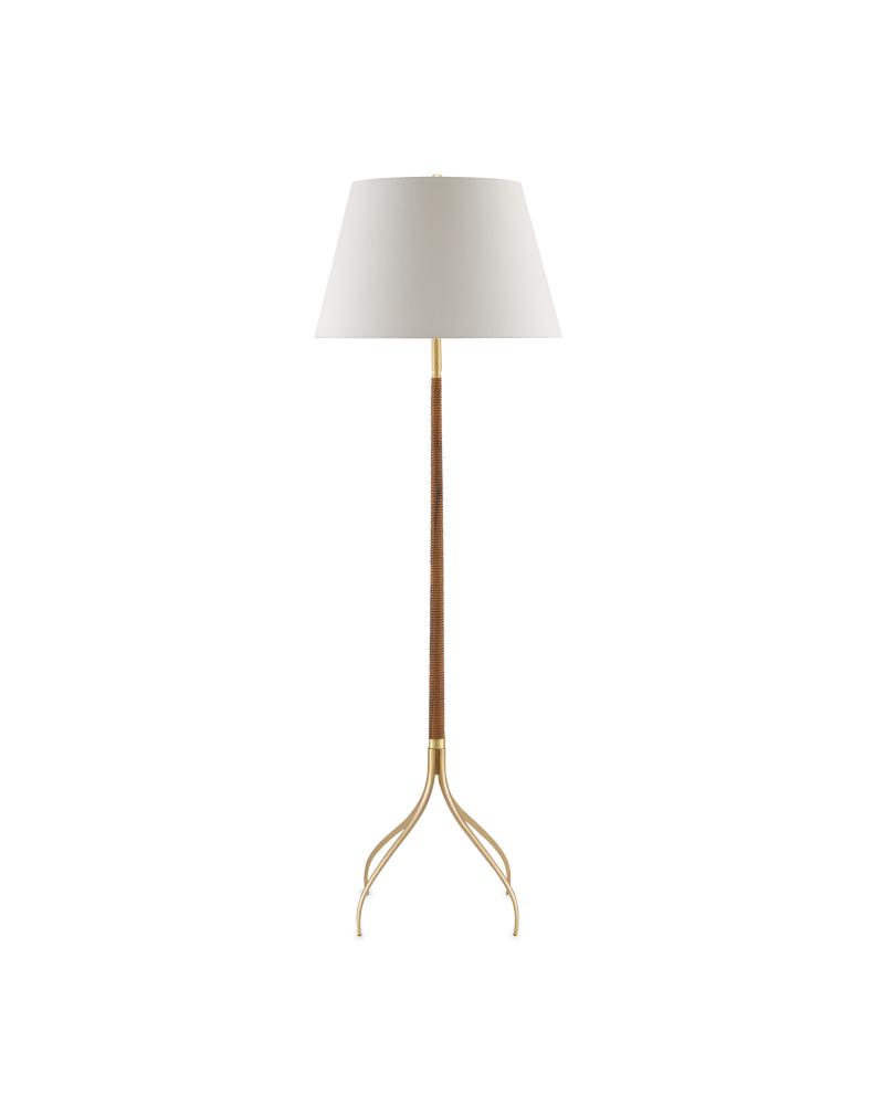 The design for the Circus Floor Lamp is described as graceful, featuring beautiful curved solid brass legs and turnings, as well as a carved, gracefully tapered wood column. The wood floor lamp is a great material story as well as being elegantly interpreted.
